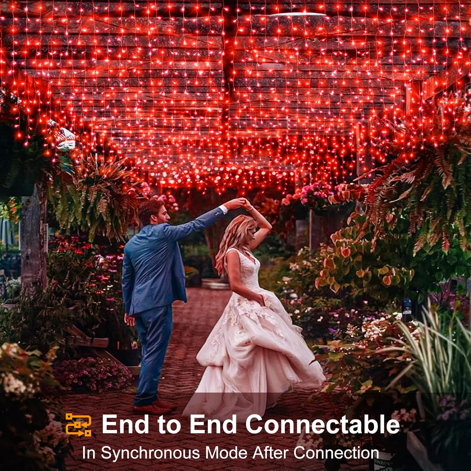 66ft Icicle Lights for Outside, Red Christmas Lights Outdoor Waterproof for House, 640 LED Twinkle Tree Lights with 120 Drops Clear Wire Short Curtain Light for Room Home Wall Indoor Decorations