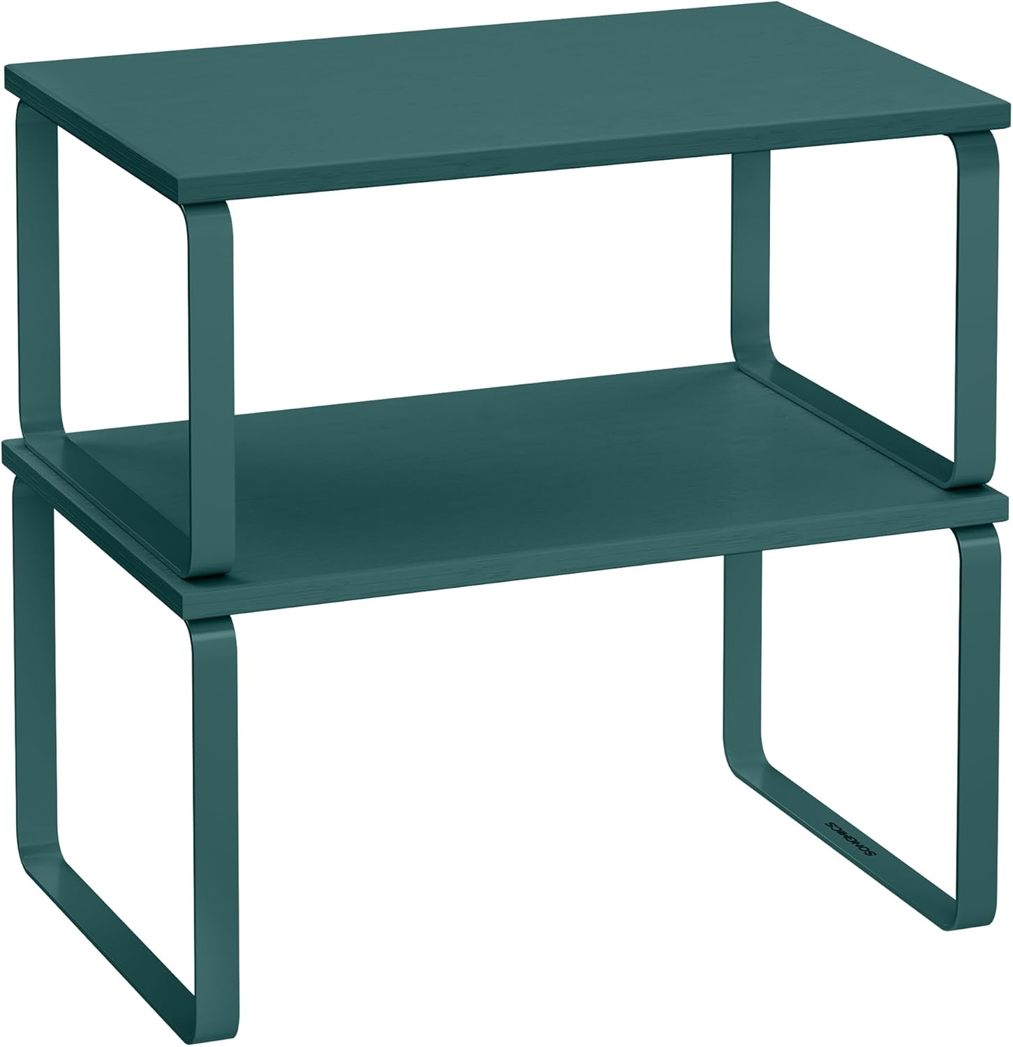 SONGMICS Cabinet Organizer Shelf, Set of 2 Kitchen Counter Shelves, Kitchen Storage, Spice Rack, Stackable, Expandable, Metal and Engineered Wood, Marrs Green UKCS002C02