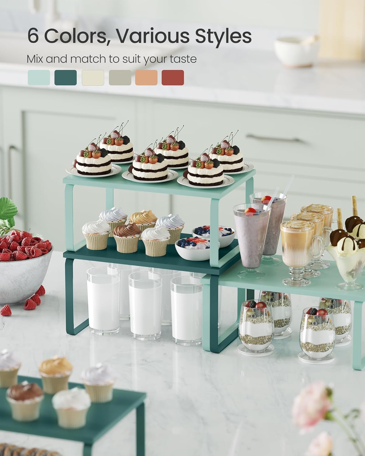 - [Versatile] They can be used in more than just the kitchen! Use them in the dining room as a way to elevate your table centerpieces, on your bedroom desk to organize your items, or even in your bathroom to neatly store your bathroom essentials