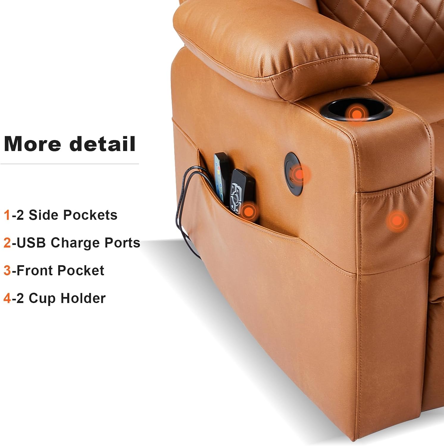 Dual Motor Power Lift Recliner Chairs with Heat and Massage for Elderly, Leather Recliners with Extented Footrest,Infinite Position Lift Chair with Cupholder,USB & Type C Ports(Light Brown)