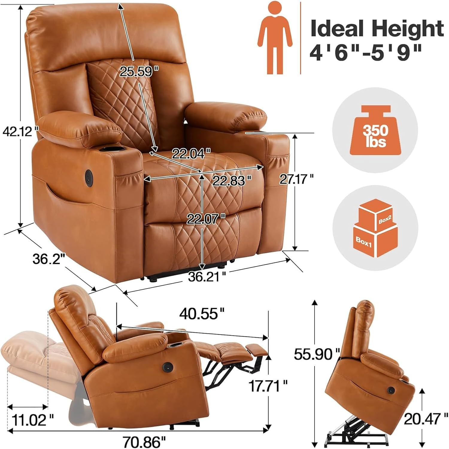 - PREMIUM MATERIALS & DURABLE DESIGN: Designed for maximum comfort, our power lift recliner features premium materials like breathable leather, high-density foam, and a sturdy steel frame. Supports up to 350 lbs, making it ideal for long-term use.