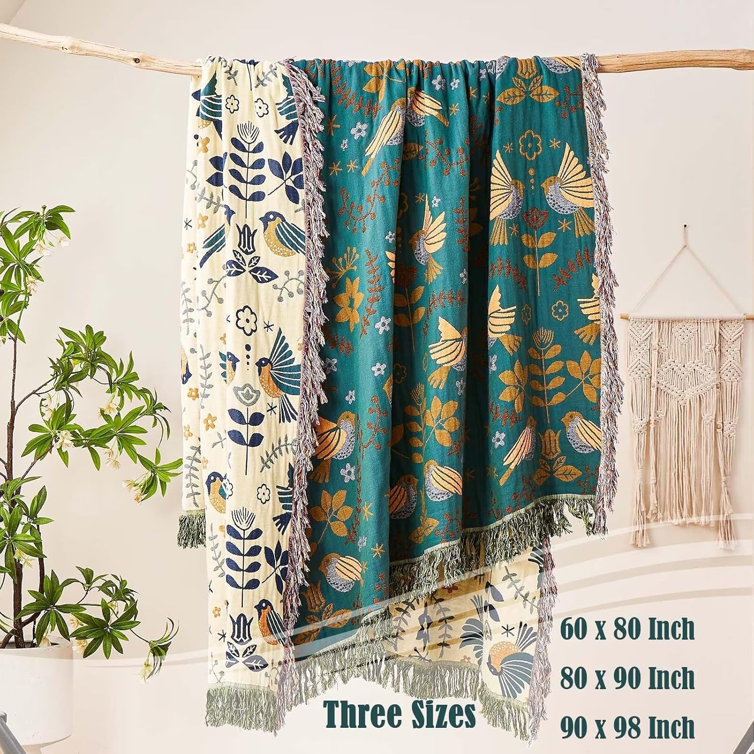- Unique Farmhouse Style:XIBLC Boho Blanket Throw has a very chic and vintage look. Elevate your space with a chic farmhouse aesthetic. Our bohemian muslin blanket showcases charming animal or floral geometric patterns on the front and back, bringing together classic colors and a variety of elements.