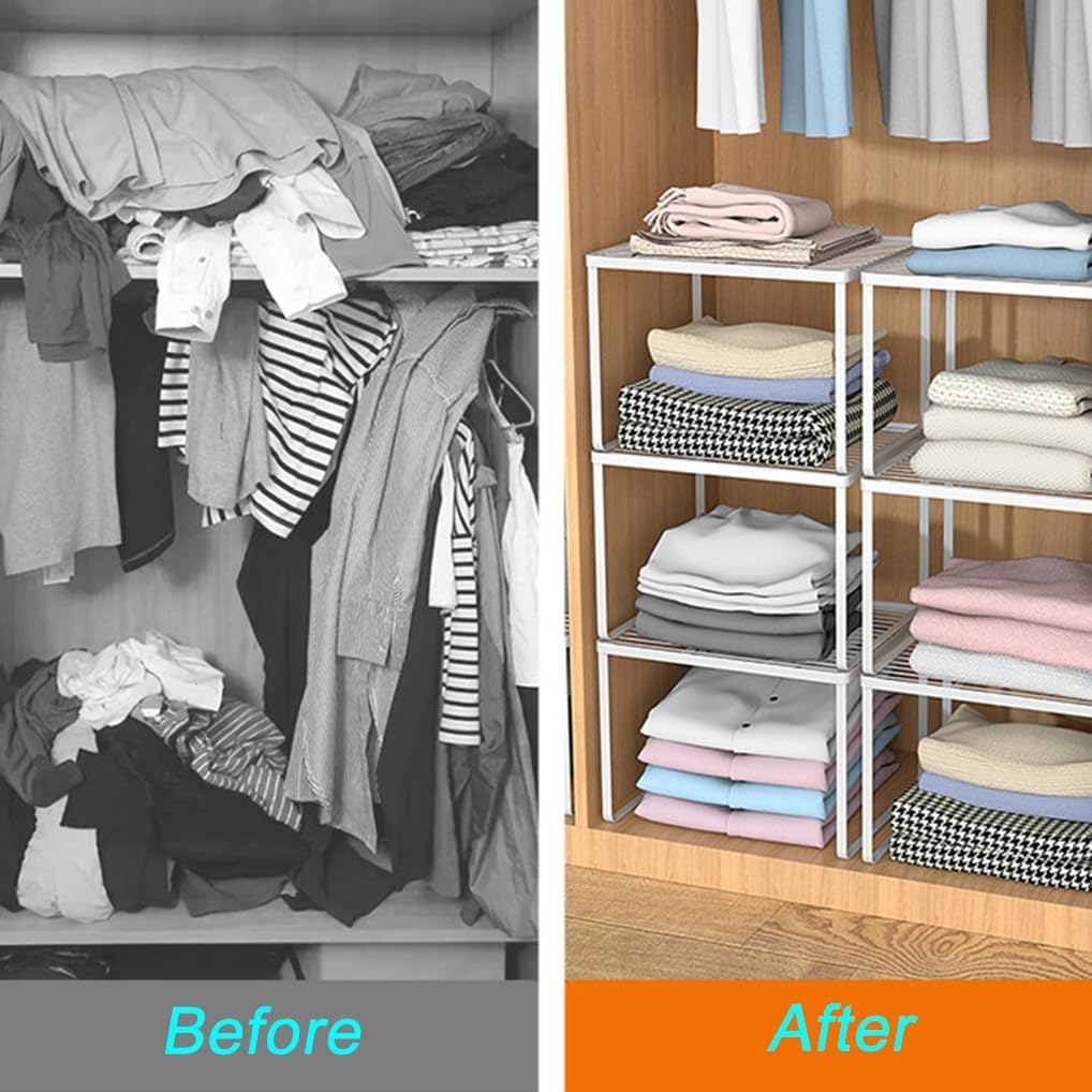 - Maximize Space Utilization: Our kitchen cabinet shelf organizer allows you to create additional storage space, keeping your cabinets neat and orderly. Say goodbye to cluttered countertops and cabinets.