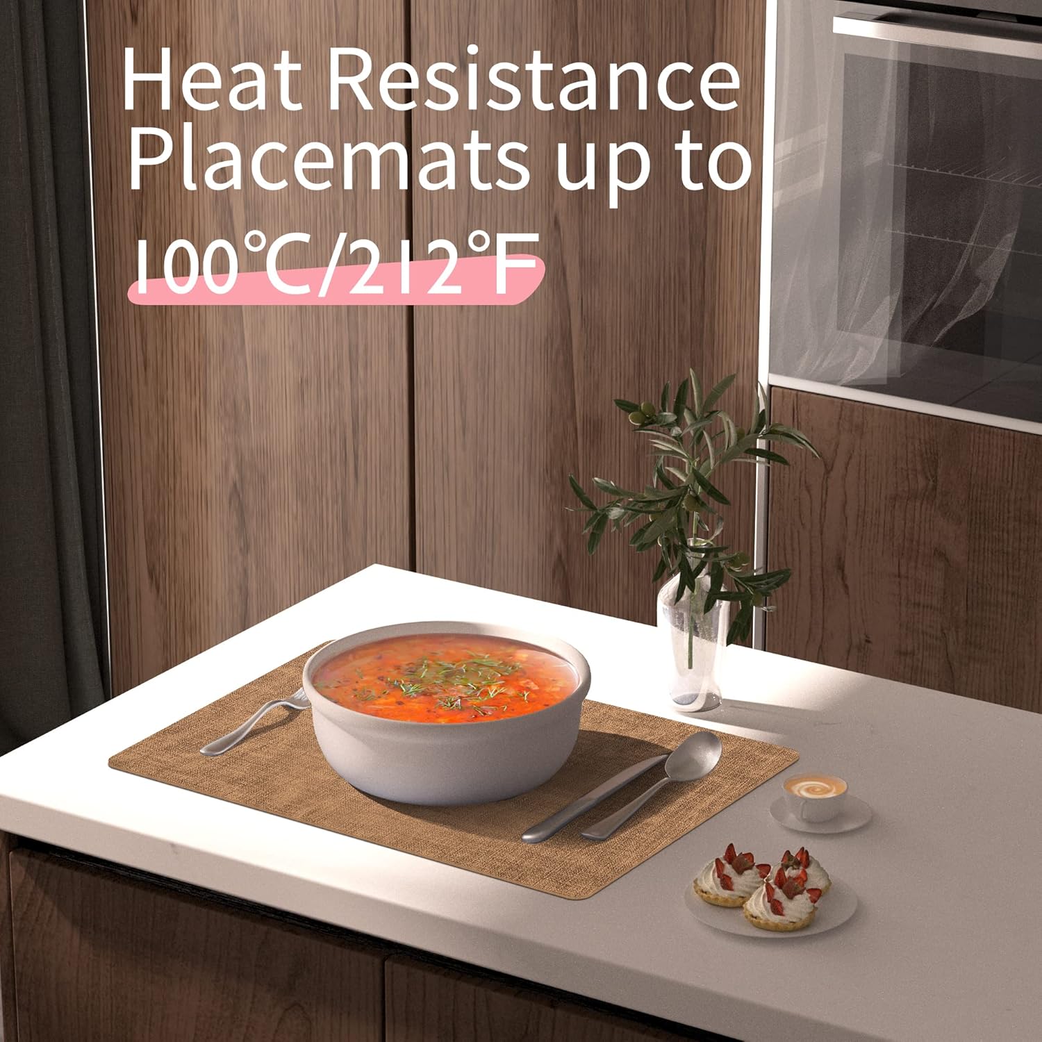 - EASY CARE: Designed for ease of use, these durable table mats withstand any spills and stains, making clean-up a breeze. Just with a simple wipe with a rag or a rinse under the tap, they'll be spotless and ready for your next meal