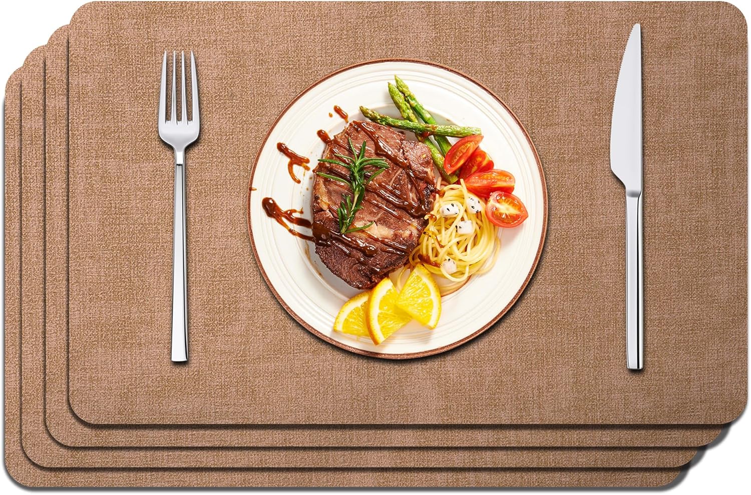 Maxpearl Faux Leather Placemats Set of 4 - Waterproof - Wipe Clean - Heat Resistant - Anti Slip Dining Table Place Mats, Suitable for Indoor & Outdoor Use, 17’’×12’’, Brown