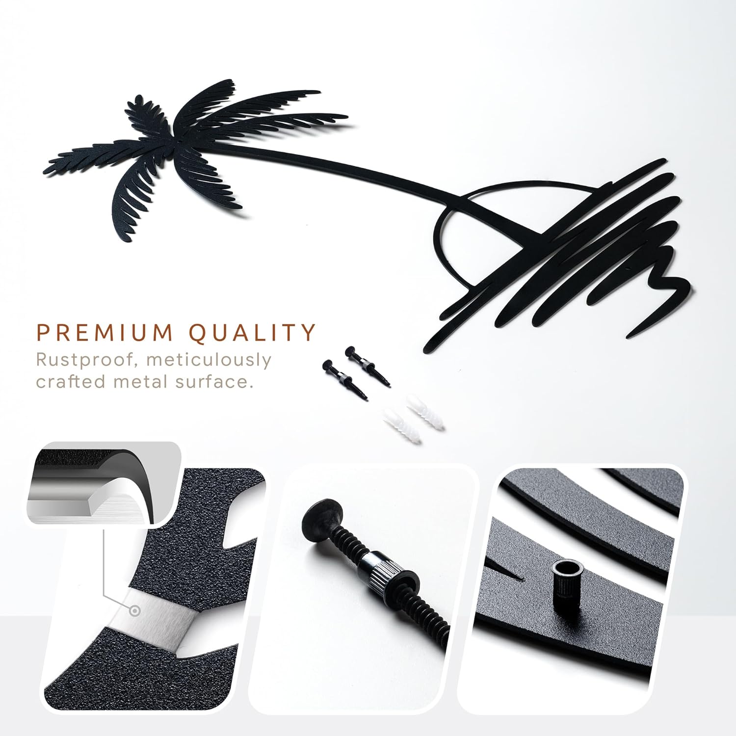 - DURABLE CRAFTSMANSHIP: Our metal wall decors are meticulously crafted from premium materials to guarantee durability and lasting quality. With attention to detail and aesthetic appeal, each piece boasts intricate designs that captivate attention and elevate any room's ambiance. Coated with static powder for enhanced resistance against rust and corrosion, they are built to withstand the test of time, ensuring long-term display in any environment.