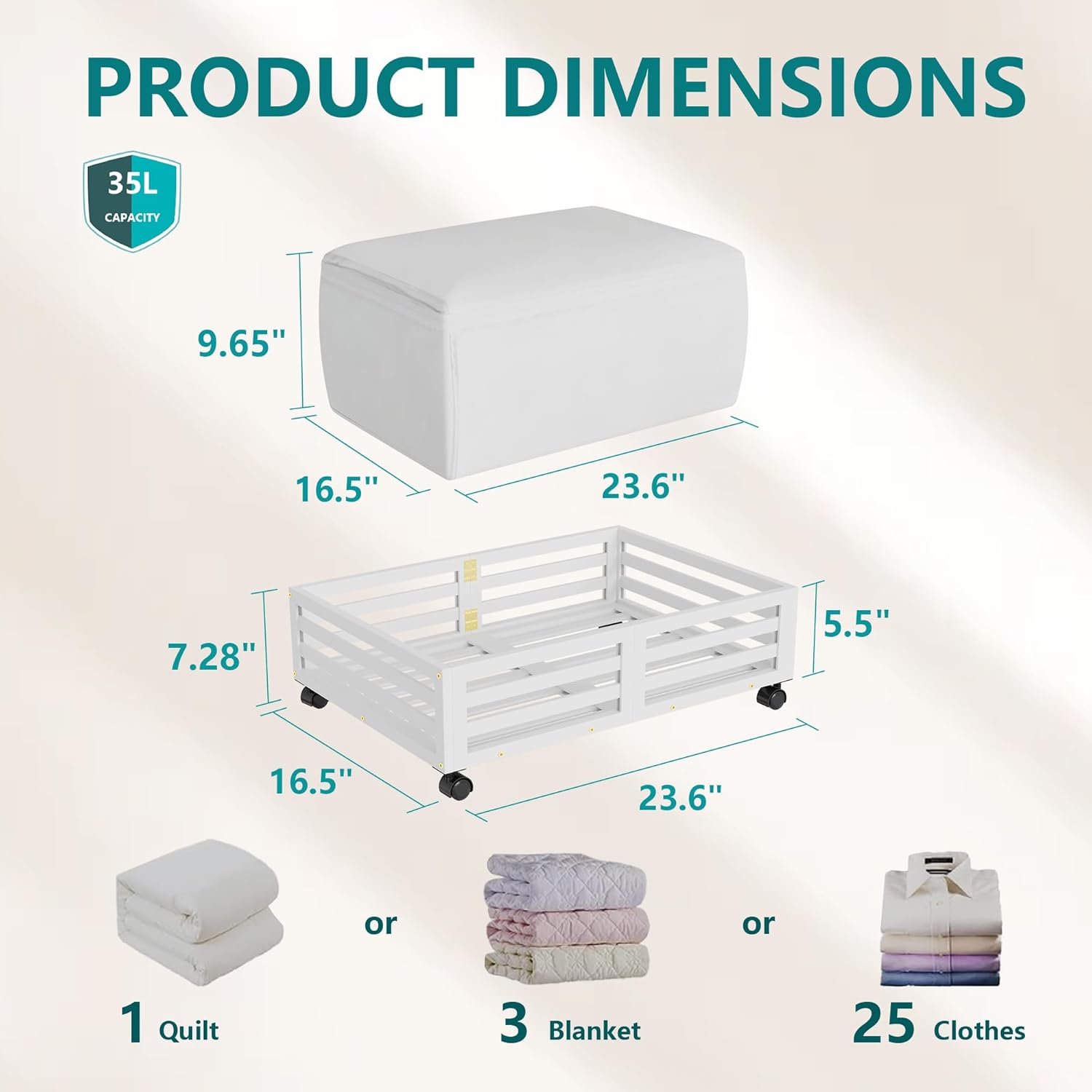 - π[Sturdy and Durable] Our under bed storage with wheels is crafted from premium wood bamboo, boasting 4 rotating wheels and a capacity of 120lbs. This 'under bed storage' solution includes non-woven bags for efficient organization of clothes, books, shoes, and toys.