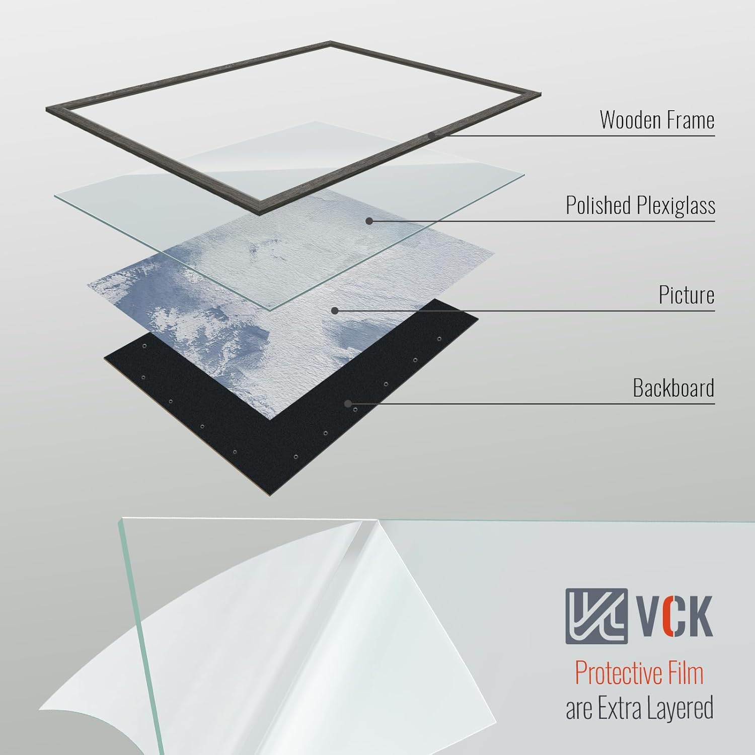 - Perfect View: VCK grey picture frames are equipped with exclusive anti-glare HD plexiglass that enhances photo protection. Free from UV rays, resilient and shatterproof, this frame is the perfect guardian for your cherished moments