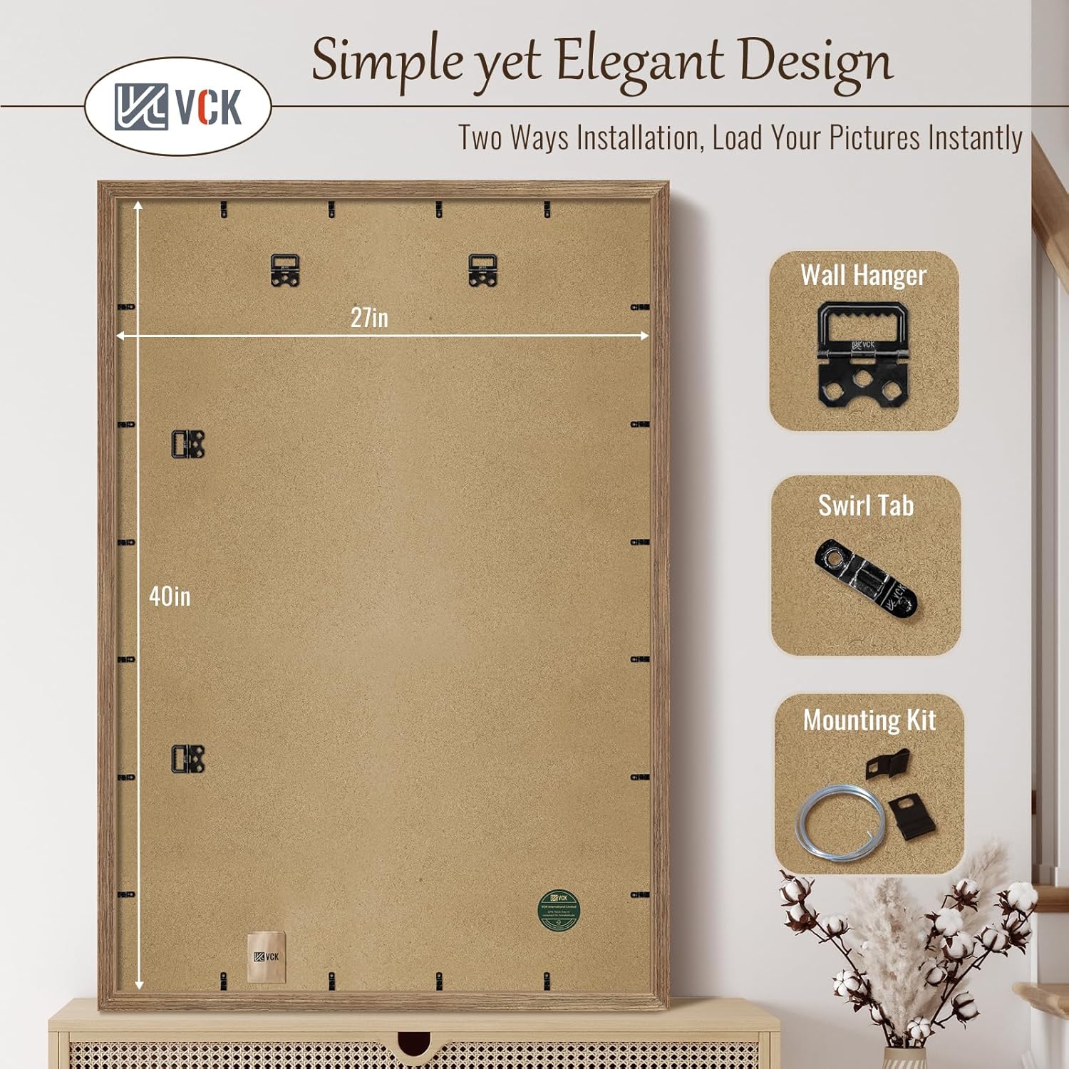 - Effortless Installation: Our picture frame comes with hanging hardware for both horizontal and vertical display. The unique spin-lock design allows for effortless loading of 27x40 or 40x27 photos, prints, diplomas, puzzles, or art