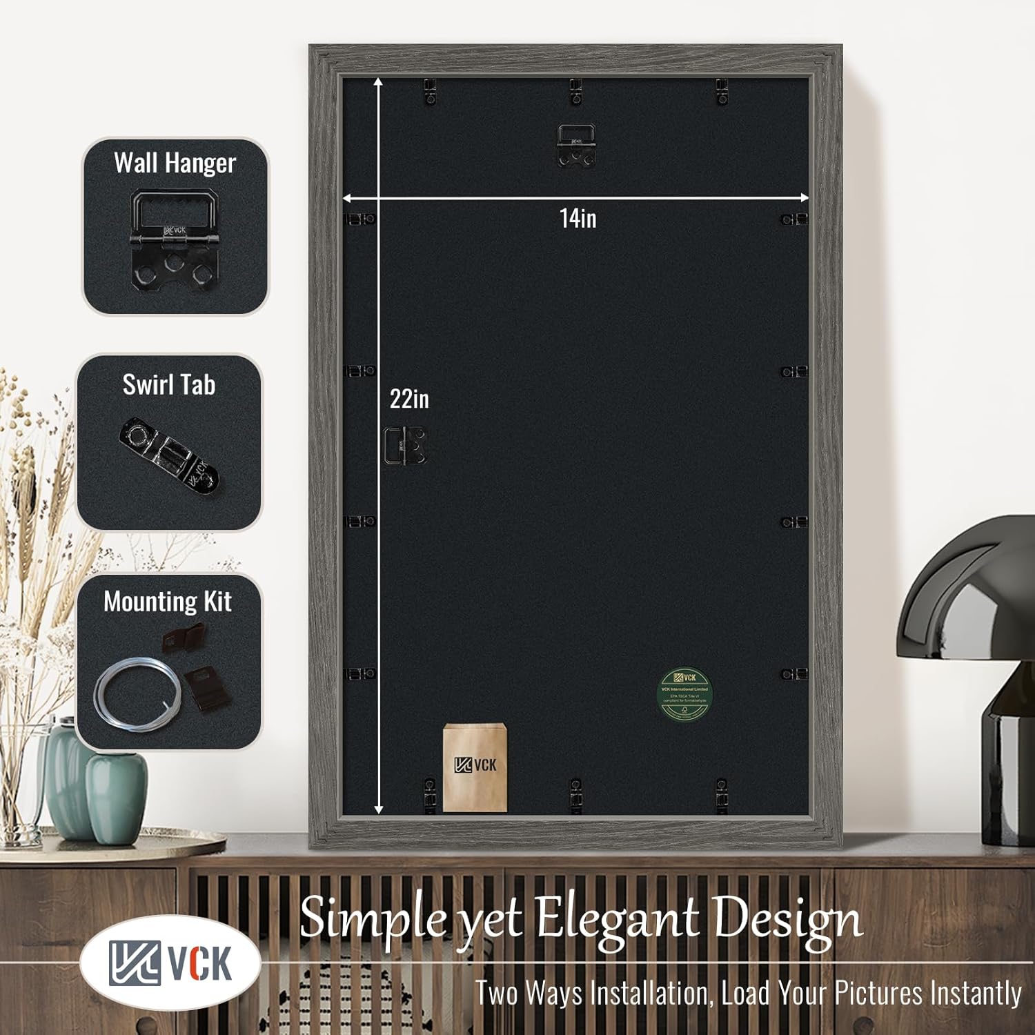 - Effortless Installation: Our grey picture frame not only comes with hanging hardware for both horizontal and vertical display, but also features a unique spin-lock design. Allows for easy loading of 14x22 or 22x14 photos, prints, diplomas, puzzles, or art
