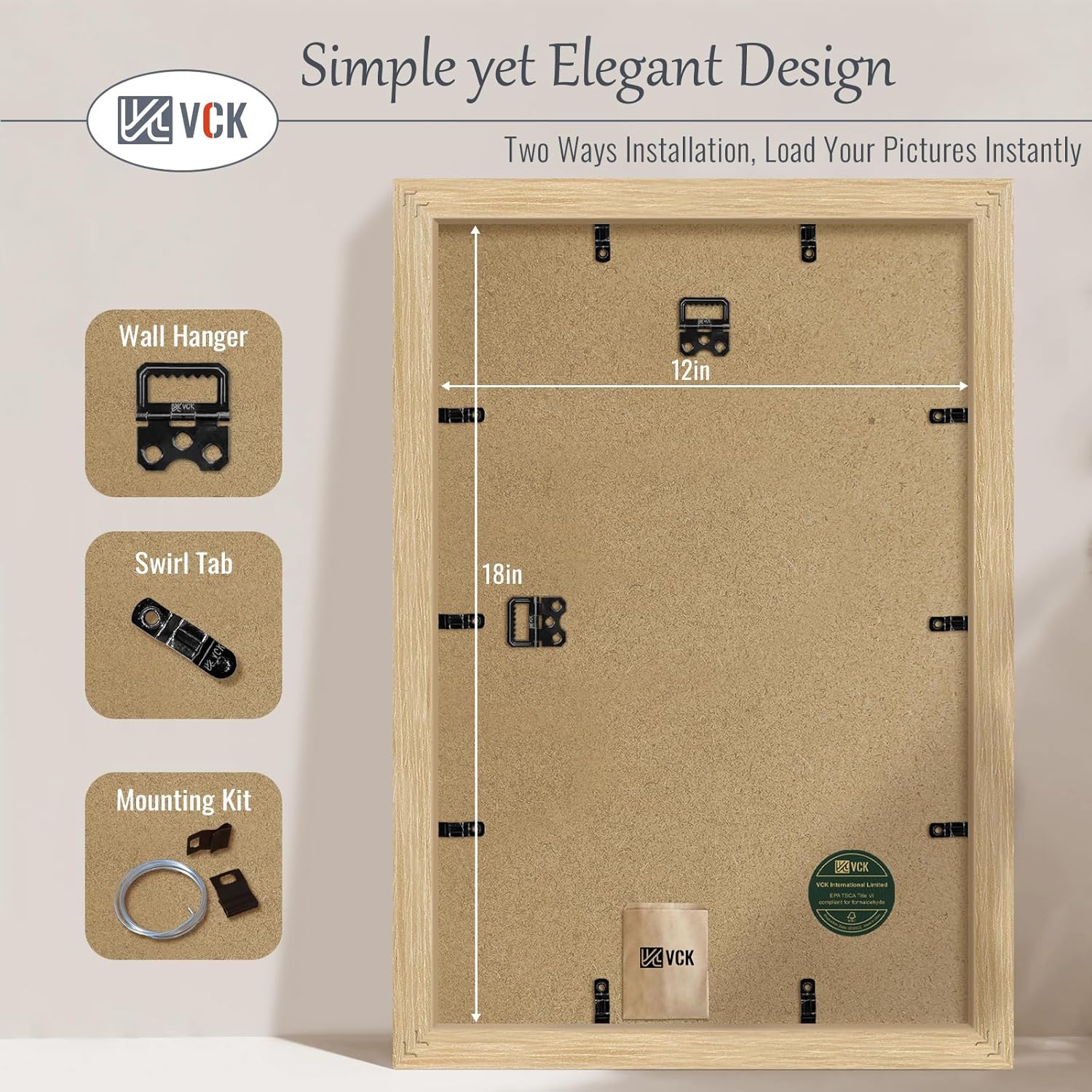 VCK 12x18 Oak Wood Frame for Poster & Picture, Natural Solid Wood Photo Frames 3 Pack, Wall Gallery Frame