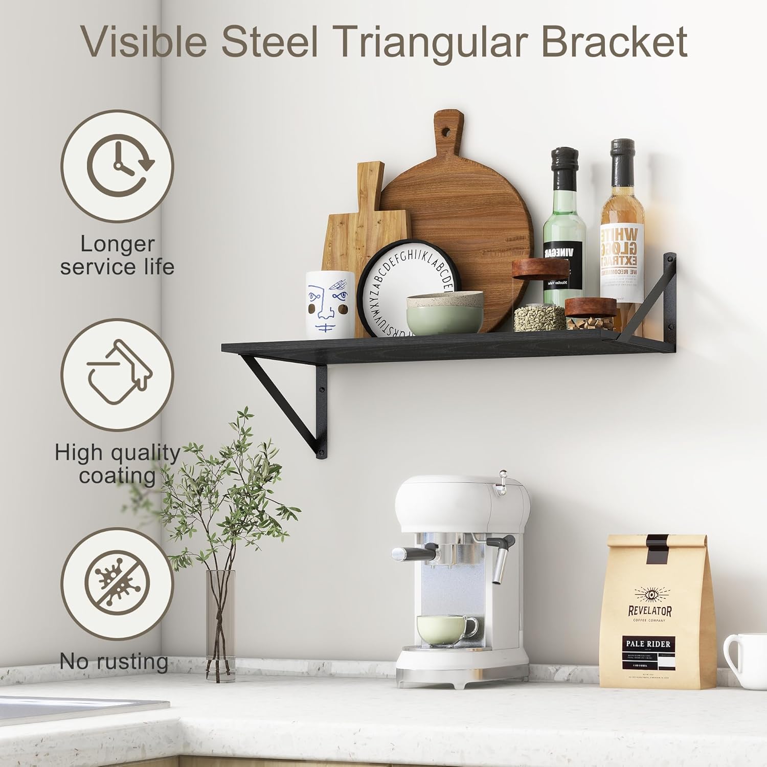 - γFARMHOUSE RUSTIC WALL SHELFγThese floating shelves are made of premium engineered wood board and visible triangular bracket. The rustic wooden grain surface add character and warmth to any modern or traditional interior with these deep floating shelves, contrast shelves at staggering heights on the wall or mount side-by-side or in the corner for a clean streamlined look.