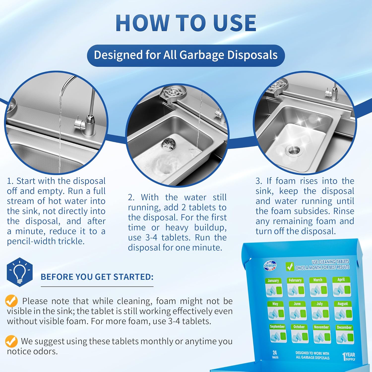 - Economical Value Pack: With 24 tablets in each pack, enjoy a full year of maintenance at an affordable price. Our product offers superior cleaning power and convenience, making it the best choice for long-term disposal care.