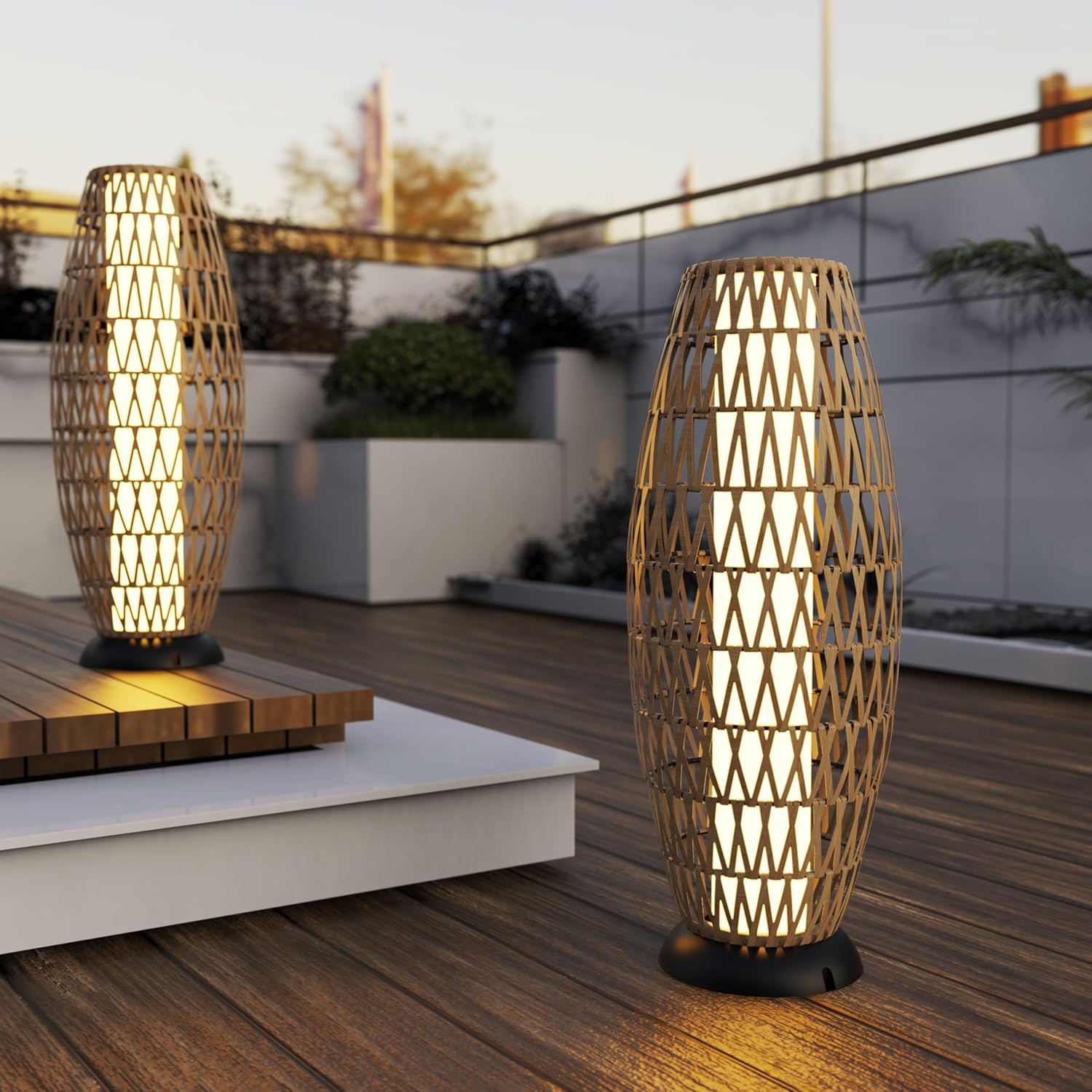 - MODERN DESIGN&WARM NOTICE: Designed with beautiful hand-woven wicker, this natural style lamp will make your patio more unique with aesthetic sense. Putting the lamp under the sunlight for at least 6 hours before using the lamp for the first time. If you have questions about our lamps within 30 days after you receive our lamp, please let us know and we will offer you a satisfactory solution. Better maintenance makes the service life of this lamp becomes longer. Please keep it away from fire.