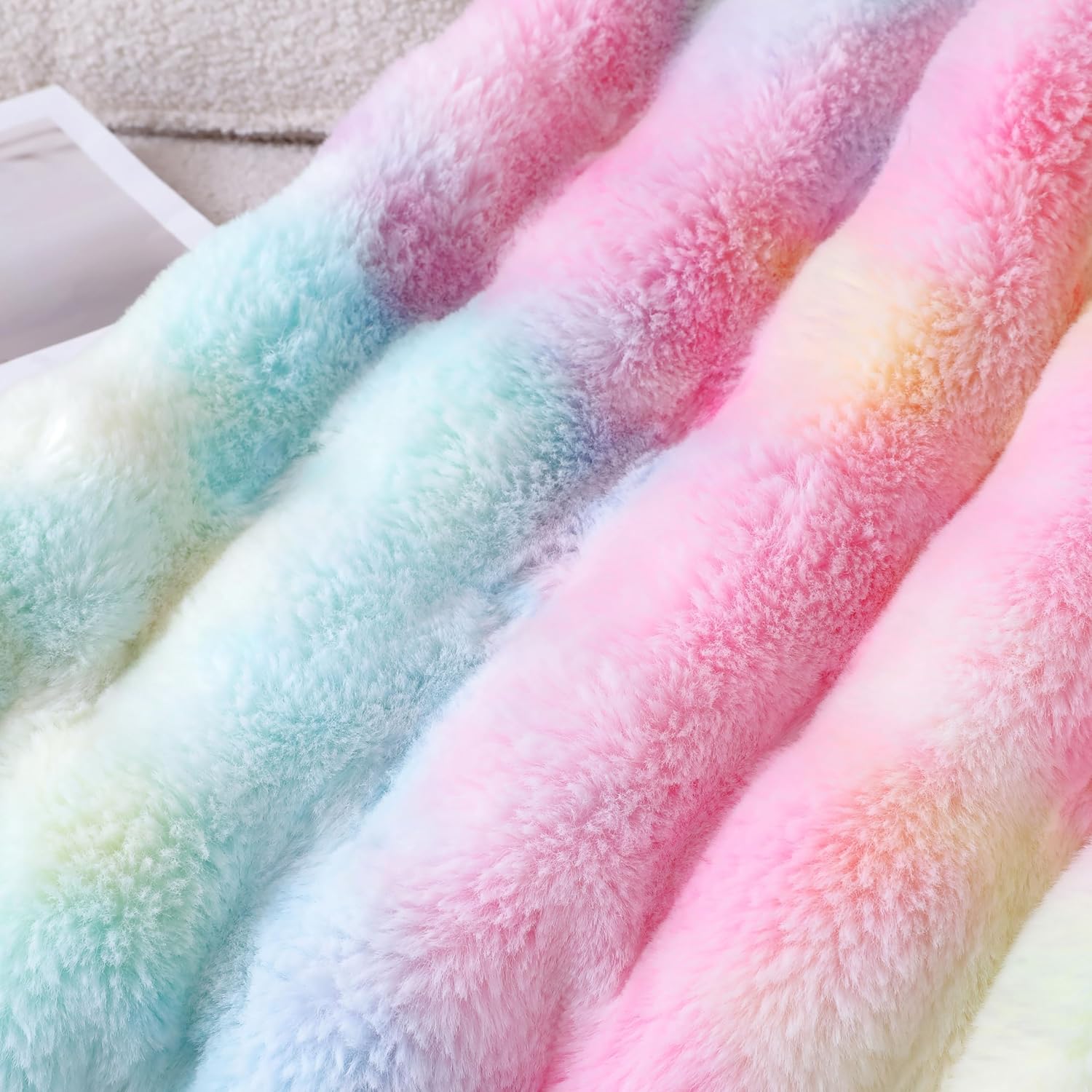 UKELER Colorful Plush Furry Throw Blanket 50''x60'', Super Soft Cozy Warm Blanket for Bed, Couch, Sofa, Office, Camping Shaggy Faux Fur Blanket Gift for Girls, Women