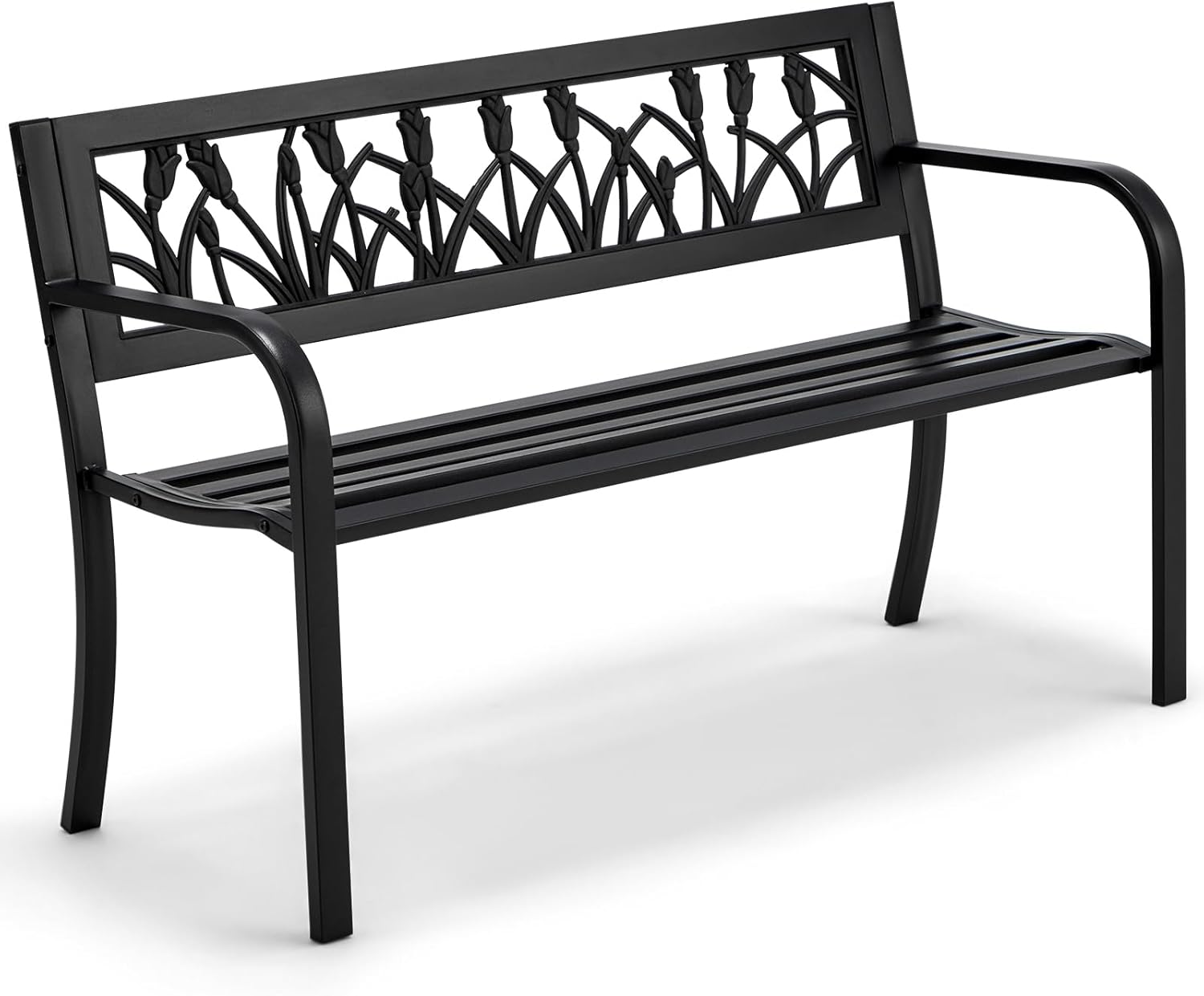 AVAWING Outdoor Bench, 2-Person Garden Benches for Outside, Metal Frame Patio Seating with Floral Pattern Backrest, Armrests for Lawn, Park, Porch, Entryway, Black