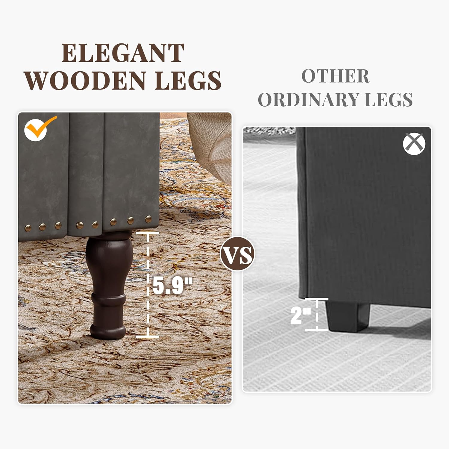 - 【STRUCTURAL STABILITY】The bedroom bench is made of multiple layers of wood panels, providing stable support. The bottom features 5.9 inch high solid wood legs, which are aesthetically pleasing and stable while protecting the floor from scratches. The internal gas rod support structure ensures smooth and steady opening and closing of the seat surface.