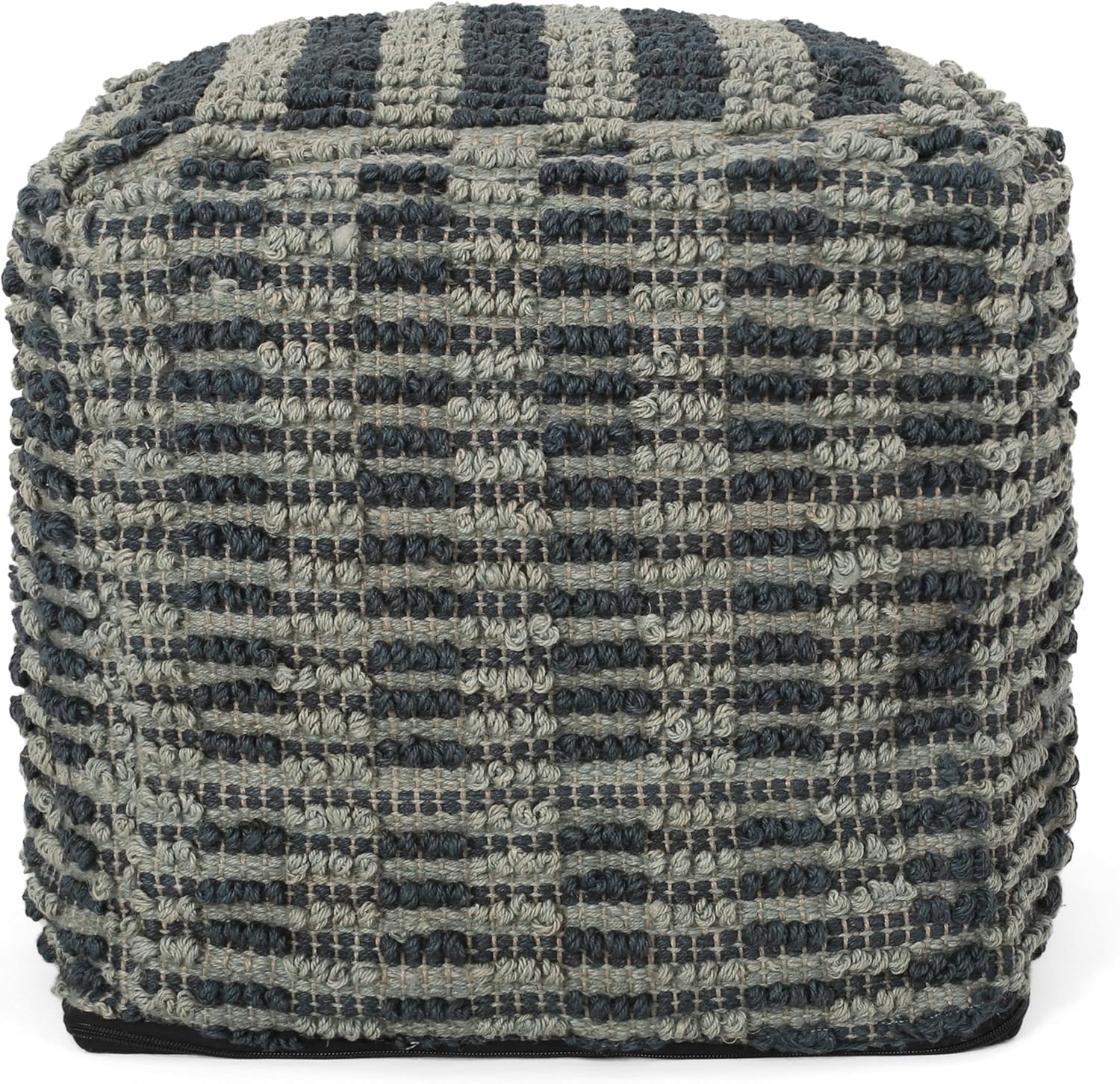 GDFStudio Boho Handmade Fabric Cube Pouf Ottoman Foot Stool - Bean Bag Floor Chair - Foot Rest Couch for Living Room Bedroom,Blue, Teal and Natural,15.75""x15.75""x15.75"", 312725N