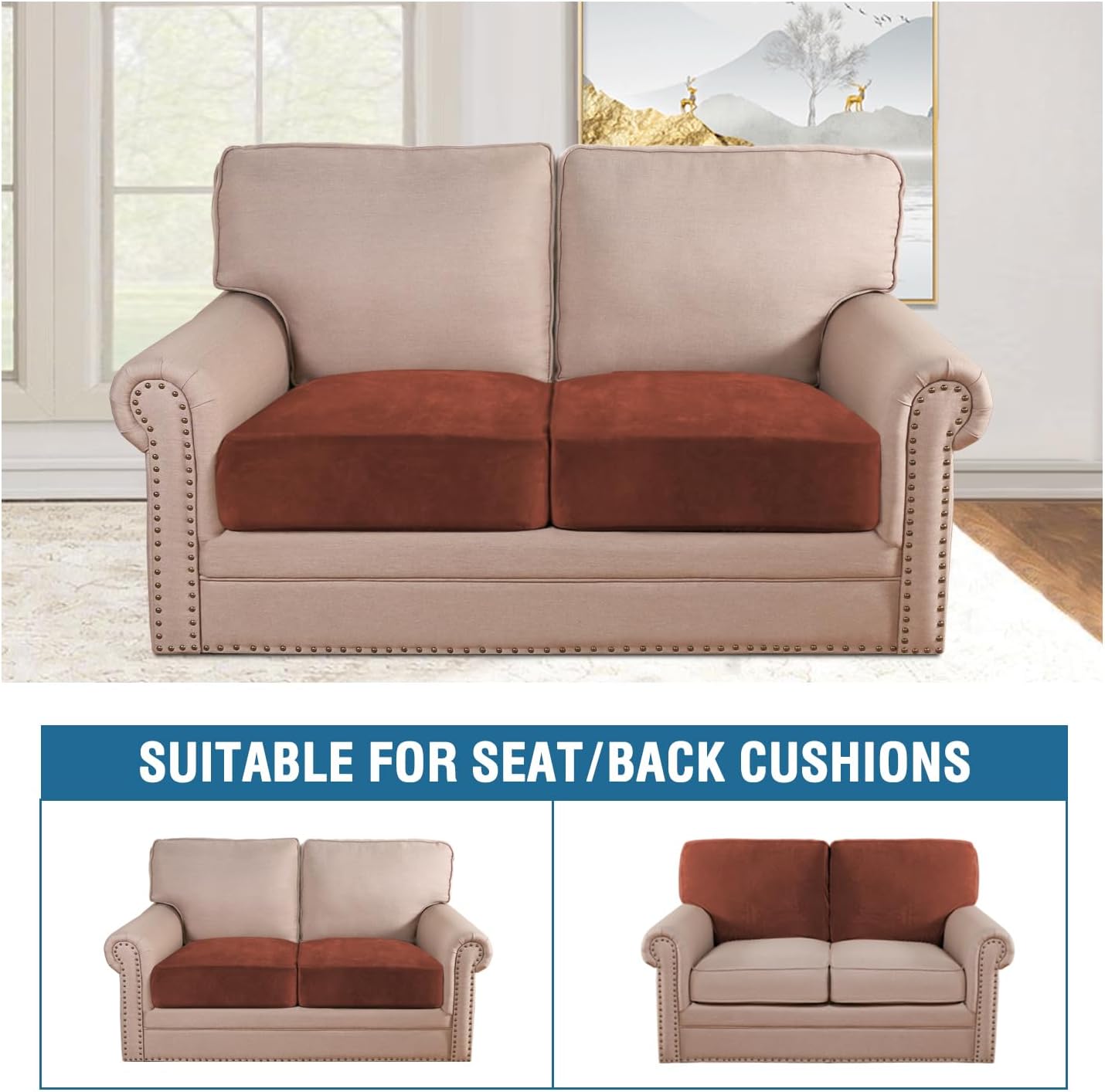 H.VERSAILTEX Velvet Stretch Couch Cushion Cover Plush Cushion Slipcover for Chair Loveseat Sofa Cushion Furniture Protector Seat Cushion Sofa Cover (2 Piece Large Sofa Cushion Covers, Rust)