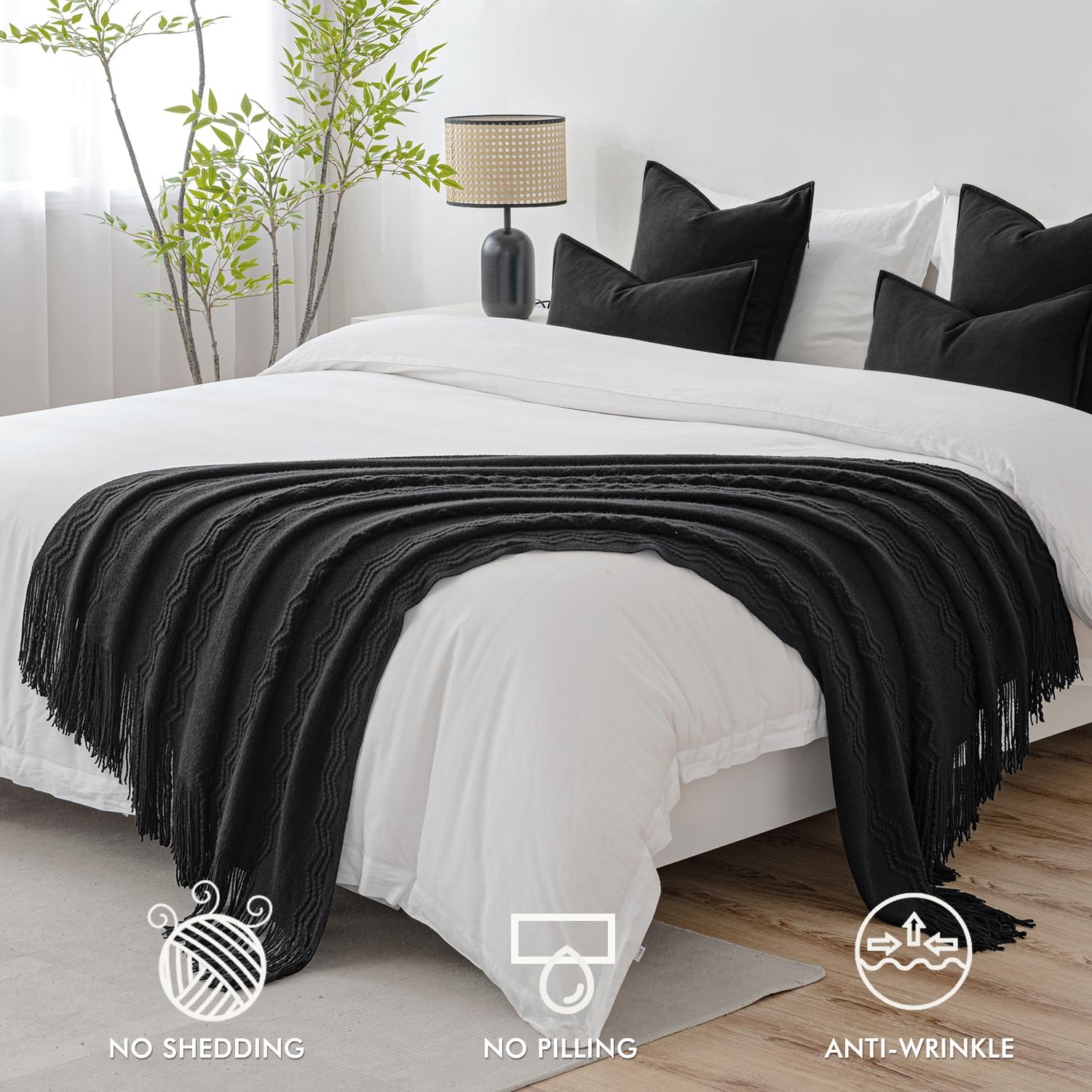 - MIULEE THROW BLANKET: 50"x60" black blanket is made of cozy weave fabric which has good comfort and breathability with cute tassels.