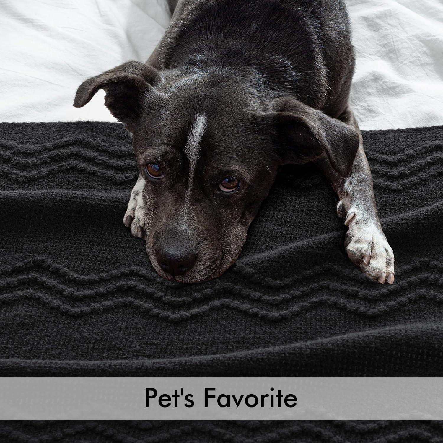 MIULEE Black Knitted Throw Blanket for Couch Textured Knit Blanket with Tassels Cozy Woven Boho Bed Blanket for Sofa Bed Chair Acrylic Wave Pattern 50"x60"