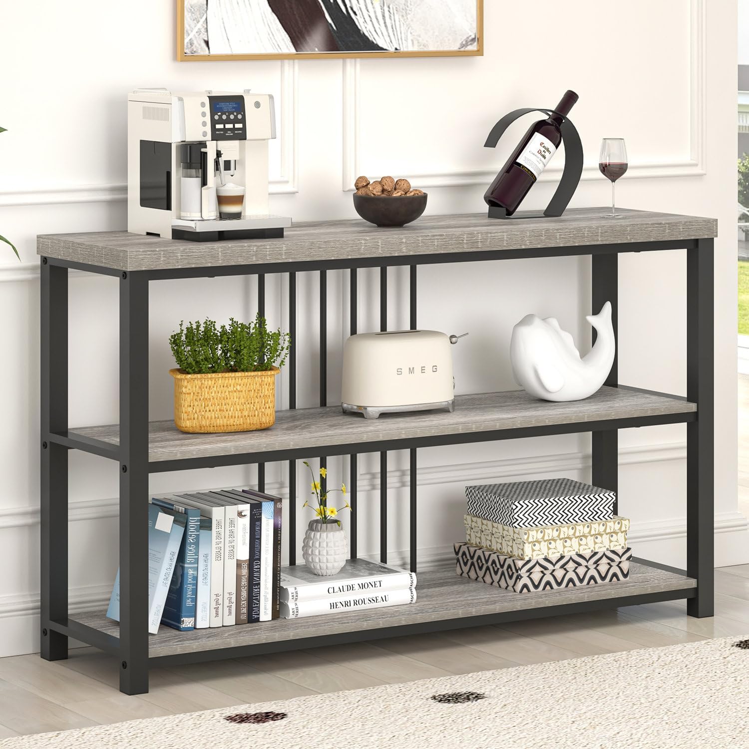 - 3-Tier Storage Space: 3-tiered shelves designed for displaying books, decorative items, framed photos or plants, providing ample storage while maintaining a tidy living space. Console table with storage, suitable for small spaces, minimizing space usage