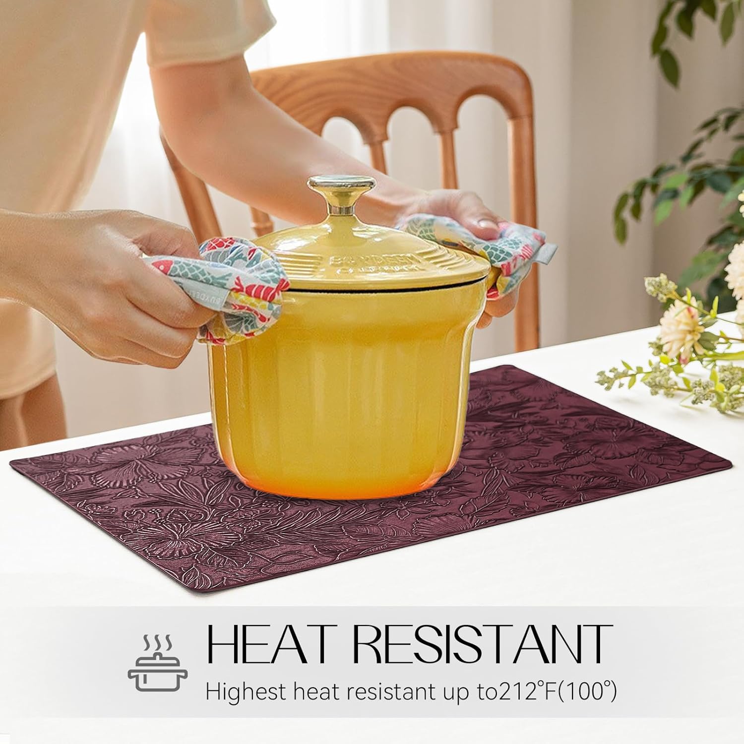 - LONG-LASTING & HEAT-RESISTANT: Both sides are made of high quality and heat - resistant faux leather. The highest heat resistance temperature of the placemat reaches 212℉/100 ℃.It's ideal for protecting your table's surface from hot dishes and liquid spills.