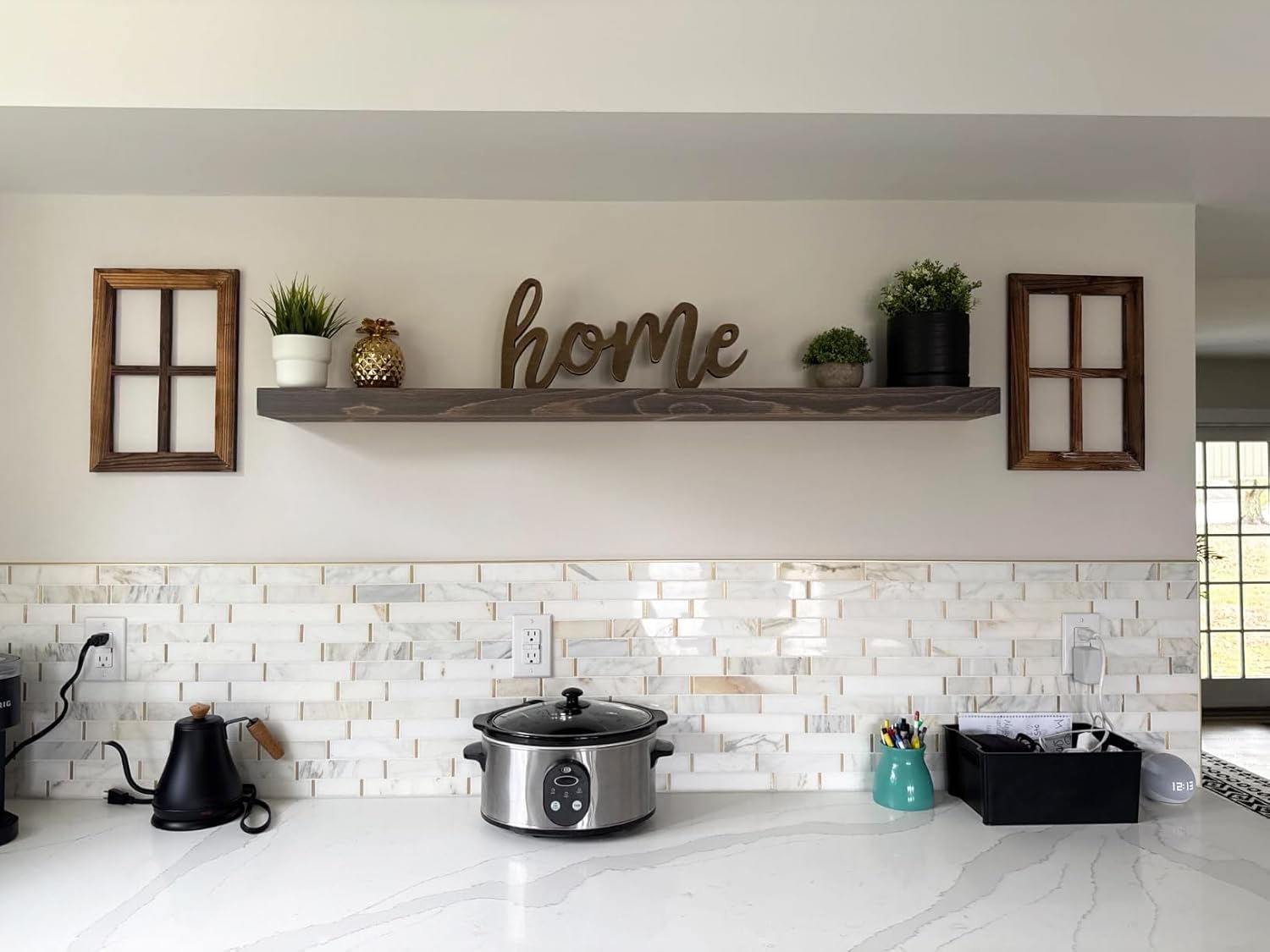 - Elevate Your Space with Rustic Charm: Transform your living room or any space with our large floating shelves for wall. These 48 inch floating shelf beauties, crafted from natural wood, add a touch of rustic warmth and provide ample display space for your cherished items.