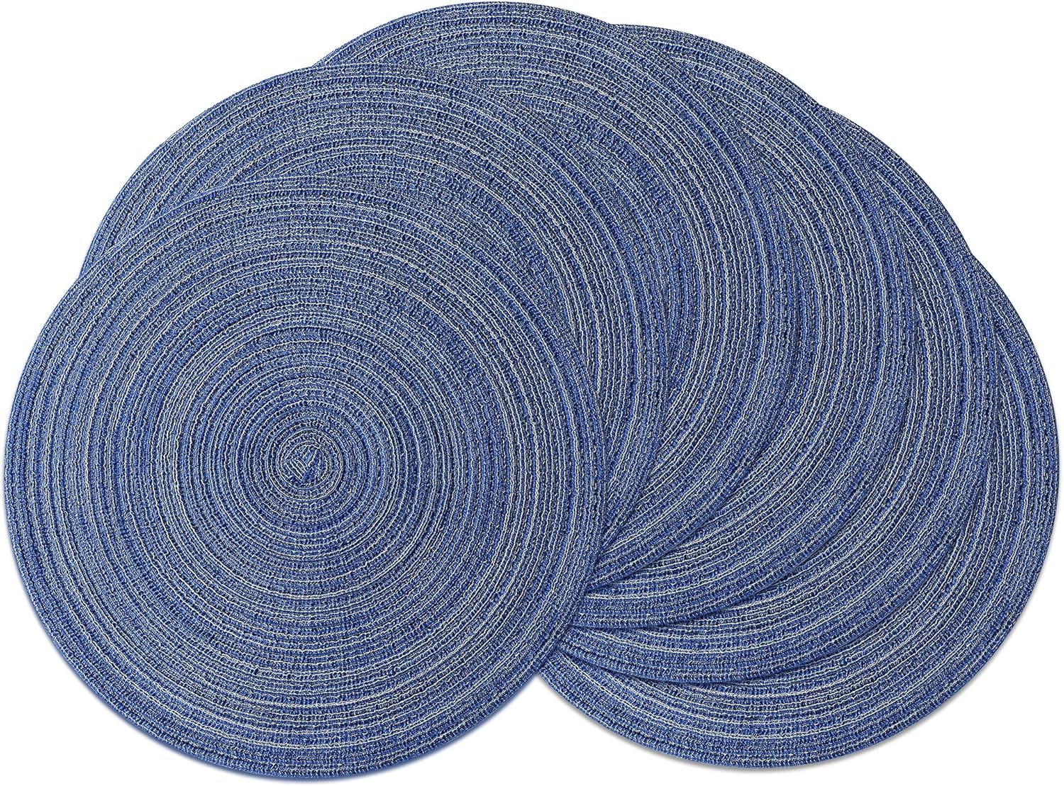 Leetaltree Round Placemats Heat and Slip Resistant Cotton Table Mats, Washable Bohemian Placemats for Dining Tables (Denim Blue, Set of 6)