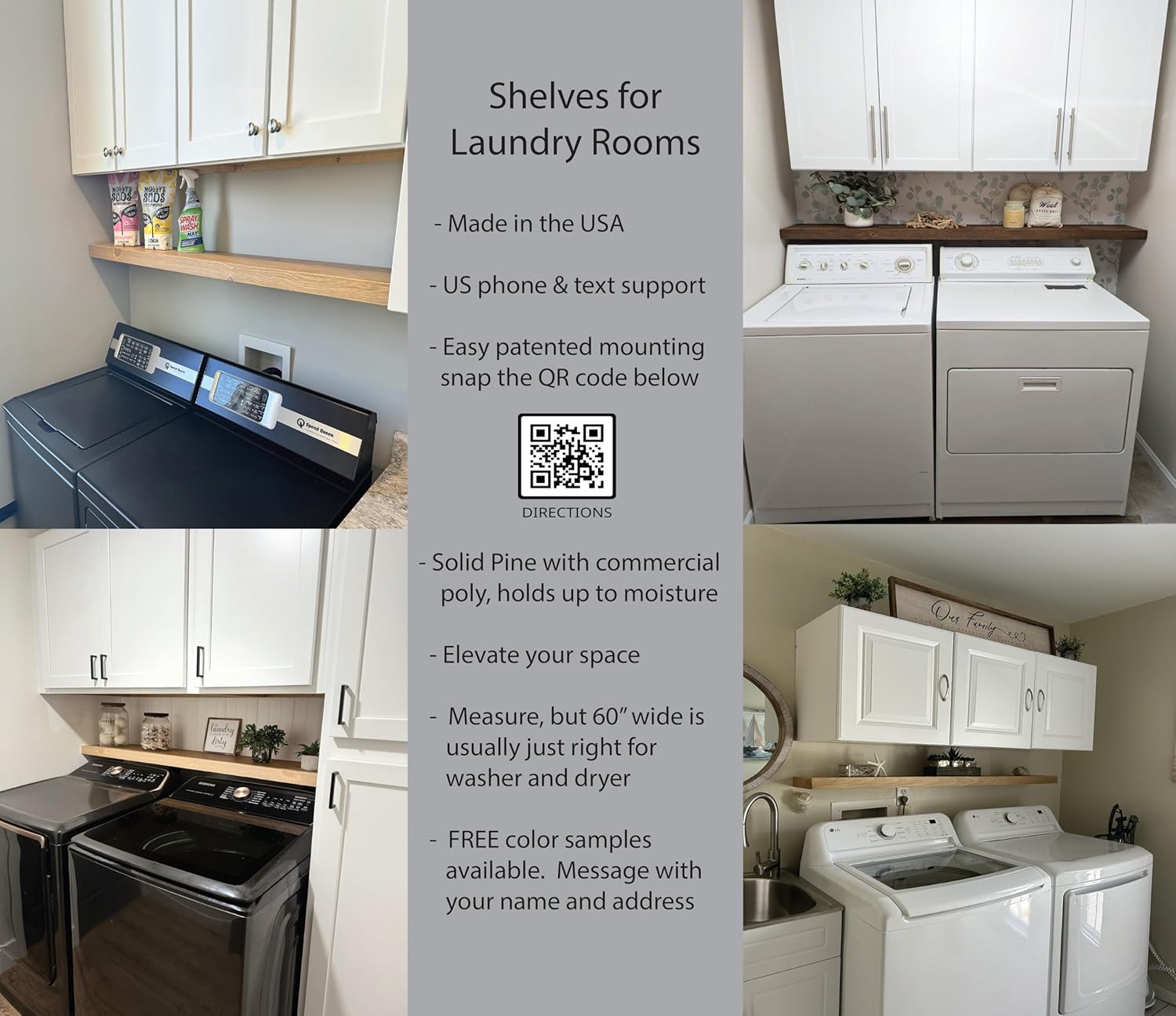 - Proudly Made in the USA: Crafted with care in the USA using sustainable Pine from Wisconsin and US steel, our shelves embody quality craftsmanship and support local industries. Recommended Weight Capacity 18โ โ 30โ shelf | 30 pounds 36โ - 54โ shelf | 45 pounds 60โ โ 72โ shelf | 50 pounds