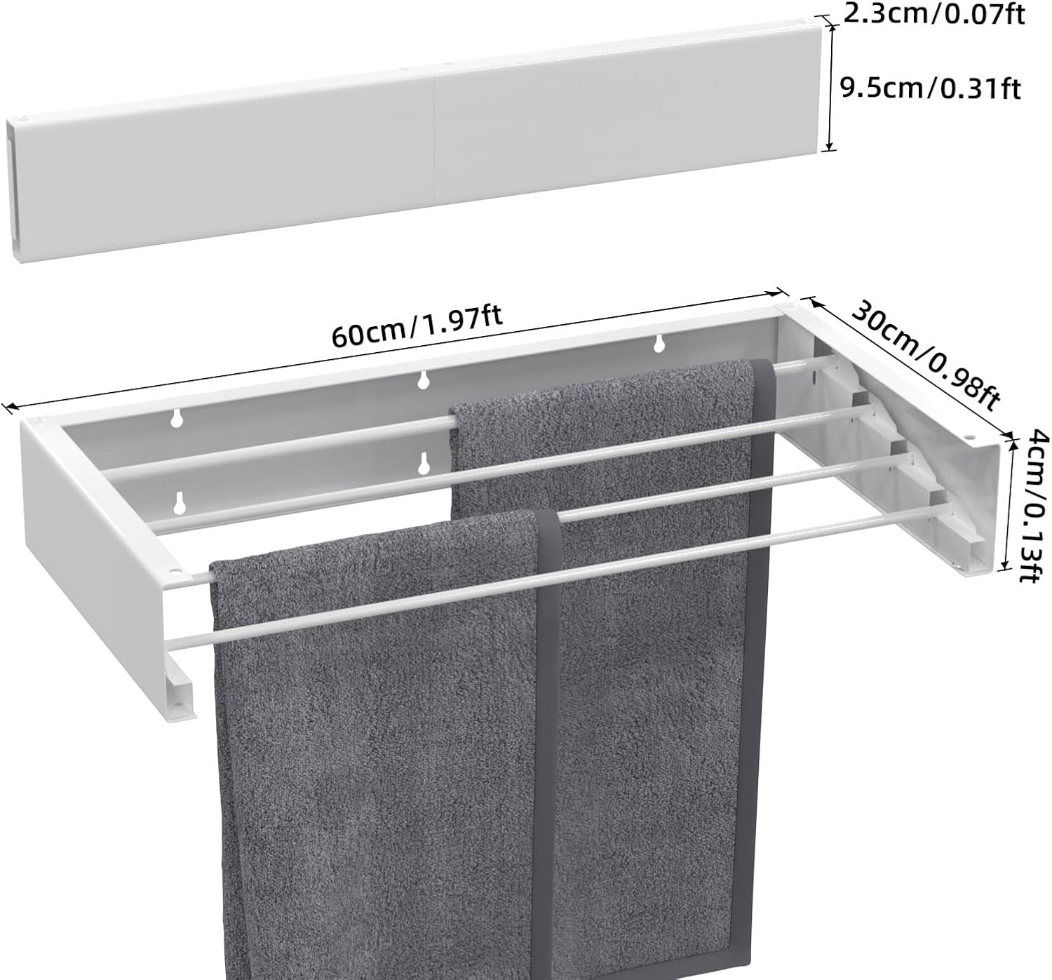 - 【Space Saving】This drying rack features a compact retractable wall-mount design that can be easily folded to save valuable space, 1 inch against the wall, the laundry rack can be neatly folded against the wall when not in use, freeing up ground space, it is an ideal choice especially for places with limited space. Also saving energy and contributing to the environment by air drying clothes.