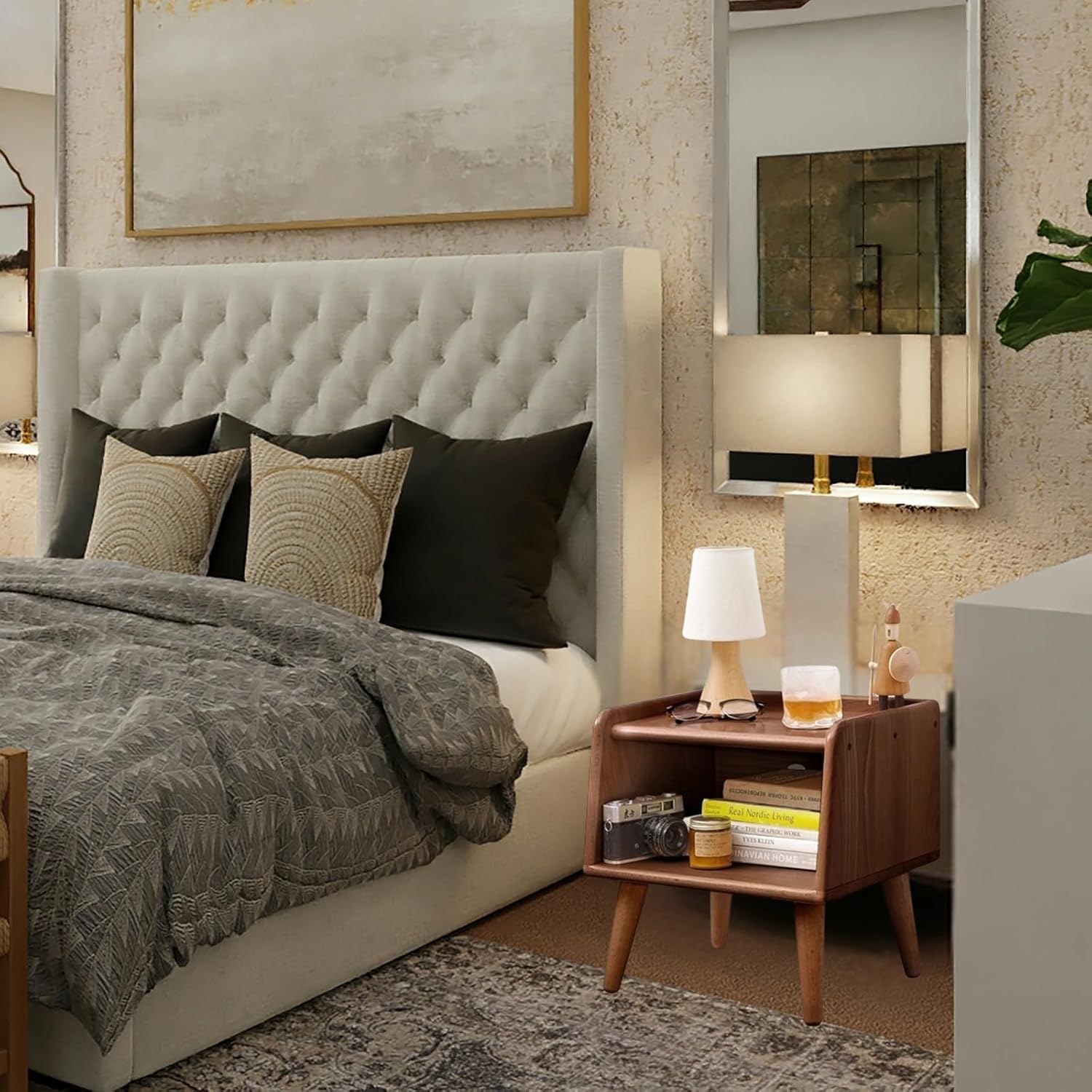 - Compact with Large Capacity: Our small single-compartment bedside cabinet features an open design that provides ample storage space. With its irregular side panel design and compact rounded shape, it fits perfectly next to your bed for convenient organization and adds a delightful touch.