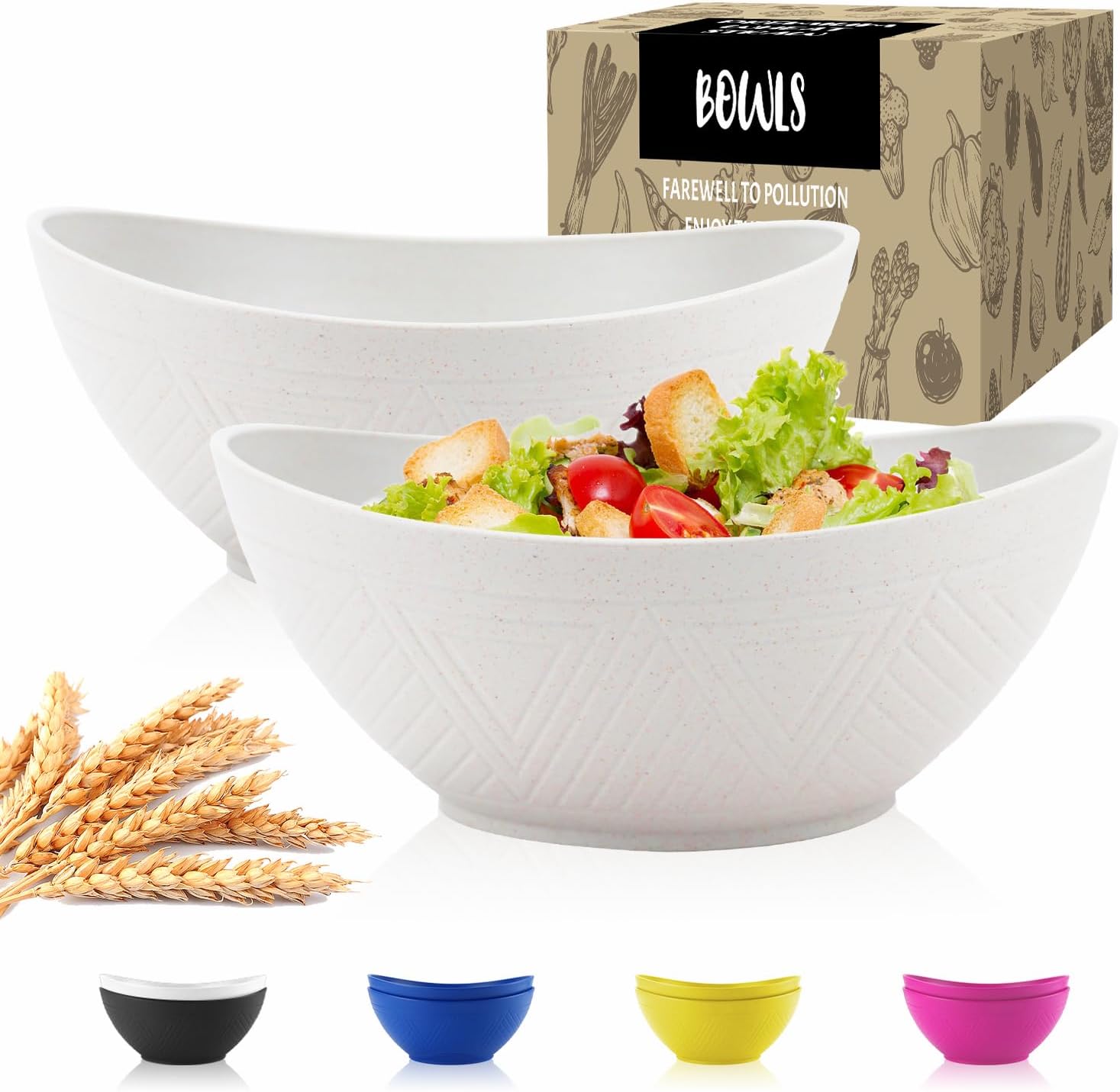 - [Material from Wheat Straw]: Every serving bowls is constructed with organic wheat straw fiber and food-grade PP, ensuring it's BPA-free, non-toxic, and odorless.our large salad bowls protect your family's health with confidence.