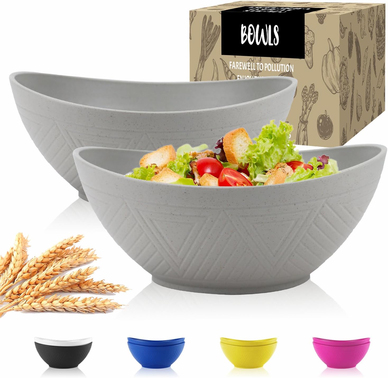 - [Wheat Straw Material]:These cooking bowls comes in 6 colors for your choice,every big salad bowl is constructed with organic wheat straw fiber and food-grade PP, ensuring it's BPA-free, non-toxic and odorless.our plastic serving bowls protect your family's health with confidence.