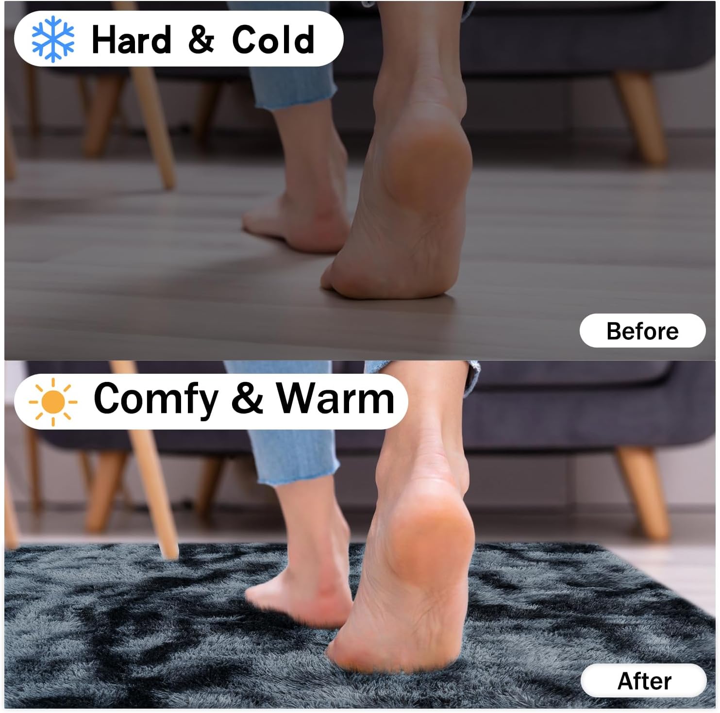 - Rezutan Area Rugs-Soft Fluffy Rug:The Rezutan shag area rug is crafted from durable microfiber, ensuring a plush and incredibly comfortable experience. Its 1.7-inch high pile surface is dense and velvety to the touch, while the 0.3-inch memory foam provides superior cushioning, isolating you from the cold ground and offering soundproofing benefits. Because of the plush fur on the Soft Fluffy rug, youโll feel like walking on the clouds when walking barefoot on the large bedroom rugs.