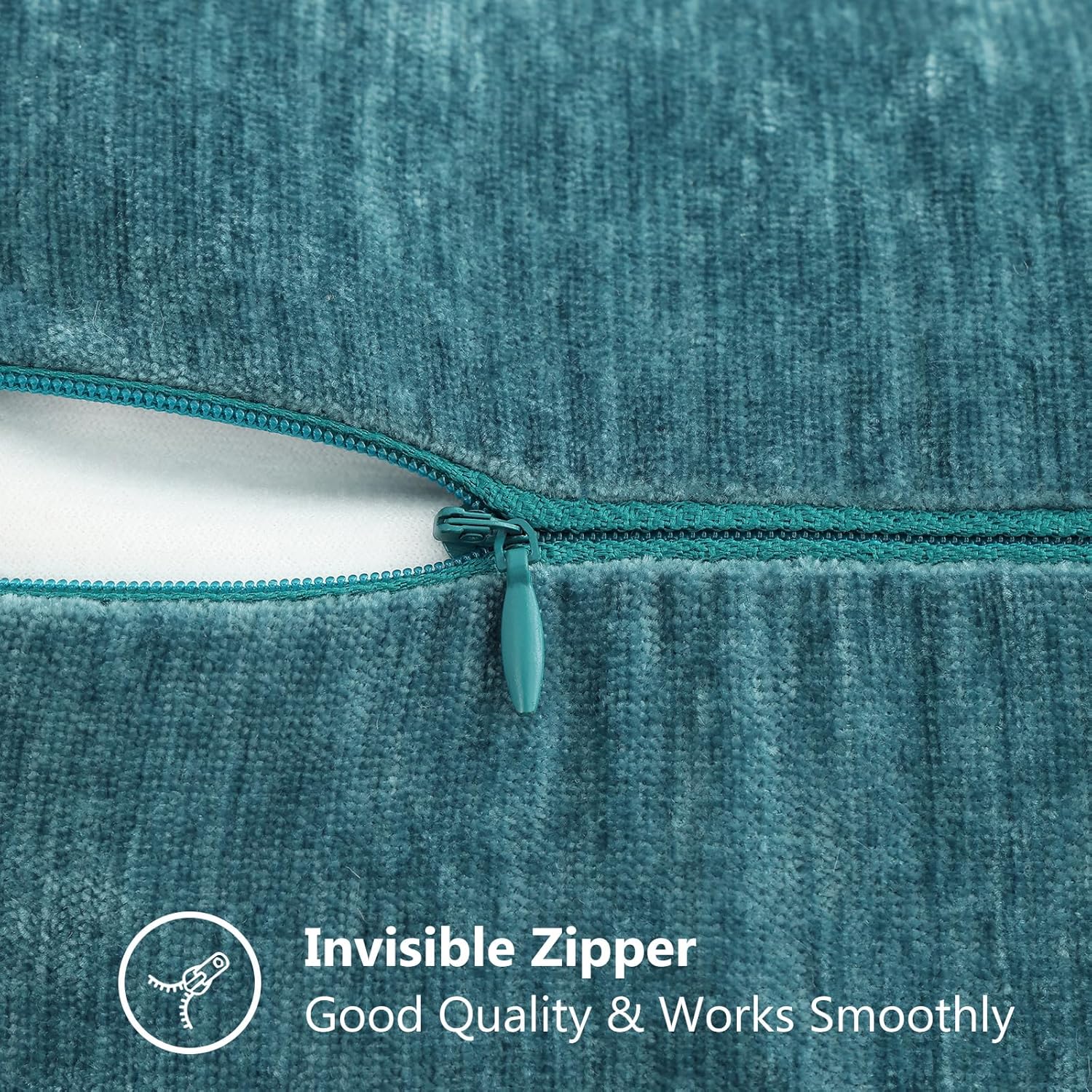decorUhome Chenille Soft Throw Pillow Covers 18x18 Set of 2, Farmhouse Velvet Neutral Decorative Euro Pillow Covers with Stitched Edge for Couch Sofa Bed Home Decor, Teal