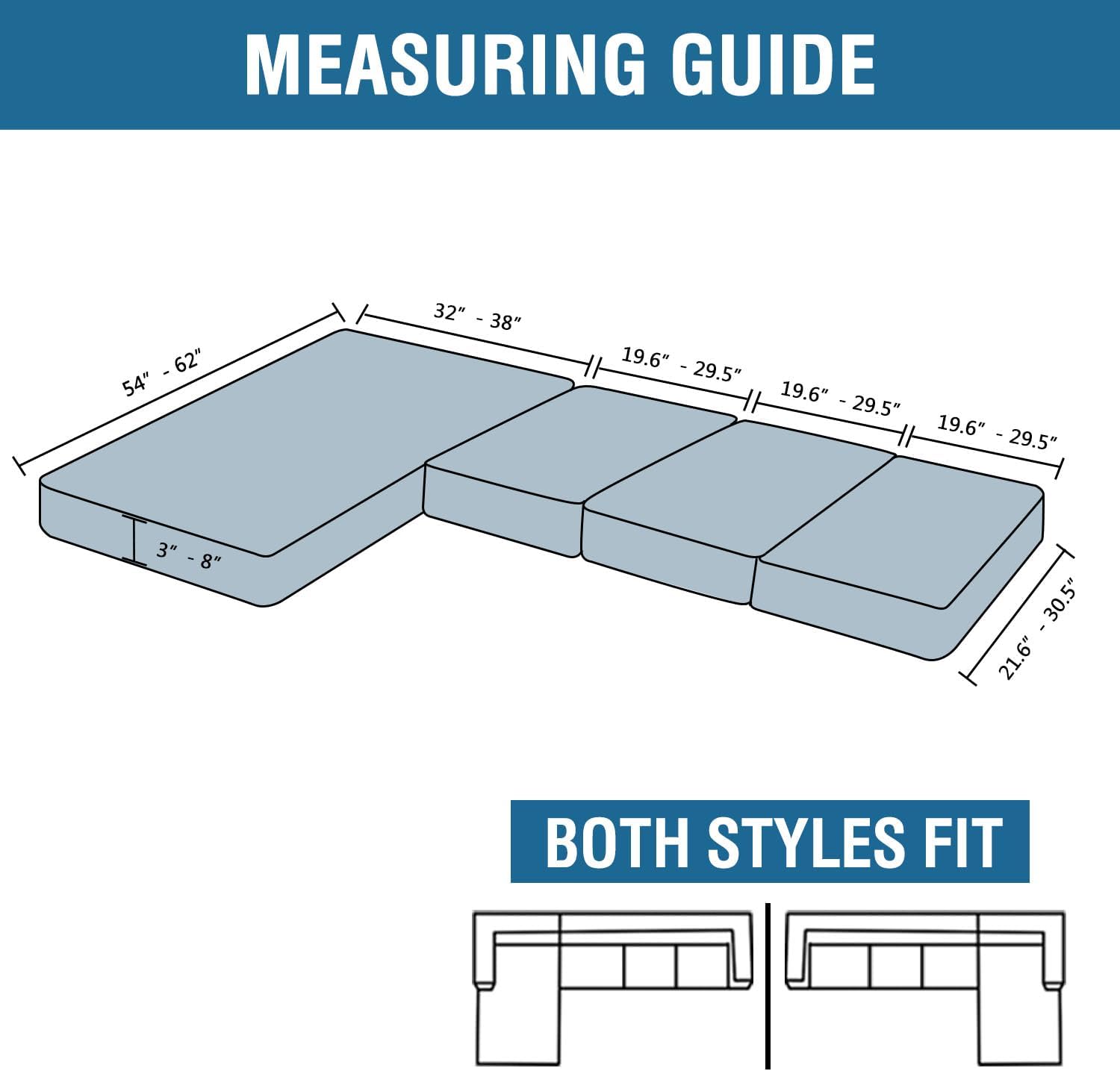 - UPGRADED THICKER: Each individual cushion cover fits up to 19.6-29 inch width, 21.6-30.5 inch depth, 3-8 inch thickness while the chaise cover fits up to 32-38 inch width, 54-62 inch depth, 3-8 inch thickness. Feature one-size-fits-most, kindly measure before ordering.