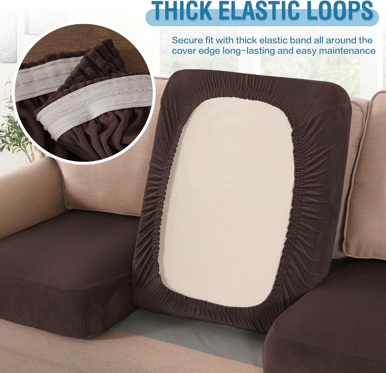 - ANY FORM FIT: Each cushion cover measures: 35-40" length, 21.6-30.5" width and 2-10" height. It's crafted from a unique extra stretchy fabric, perfect for regular square cushions, T-cushions and also L-cushions, used to cover not only the seat cushions of your sofa, but also the back cushions as long as they can be separated from the sofa