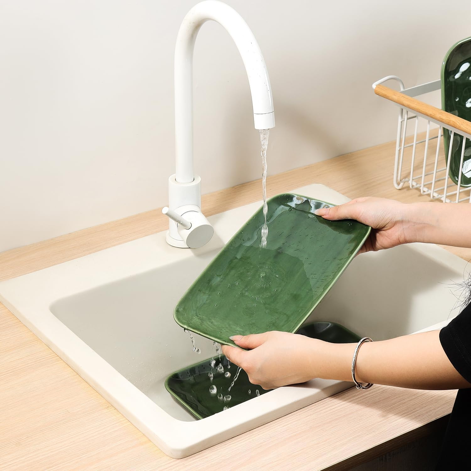 - DURABLE SERVING PLATTER SET: These ceramic rectangle dinner plates using only the highest-quality clay, which enable the porcelains to be much safer and healthier, sturdy and durable, you can safely use them in Microwave, Ovens, Freezer, and Dishwashers.