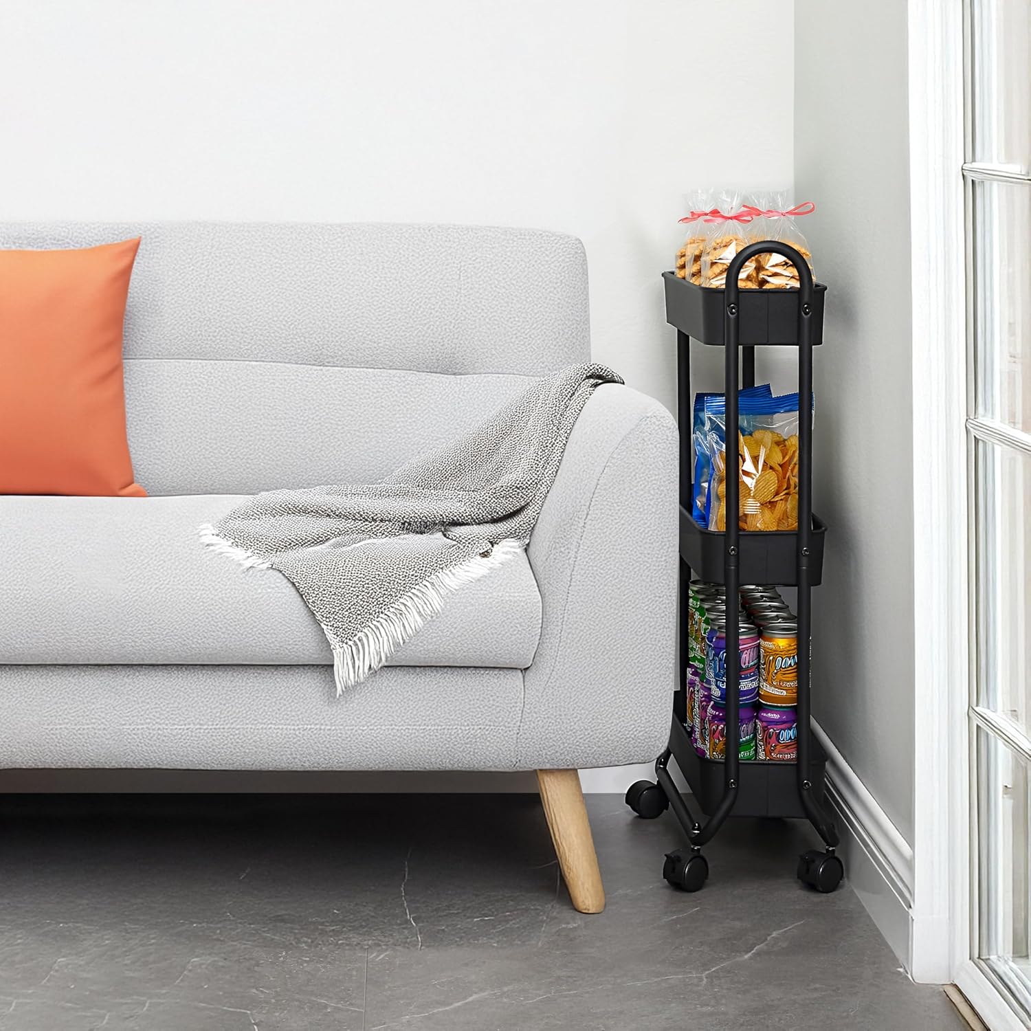 - Make the Most of Your Space: Cleverly use narrow gaps with this slim rolling cart, perfect for spaces between the toilet and sink, washer and dryer, or refrigerator and counter.