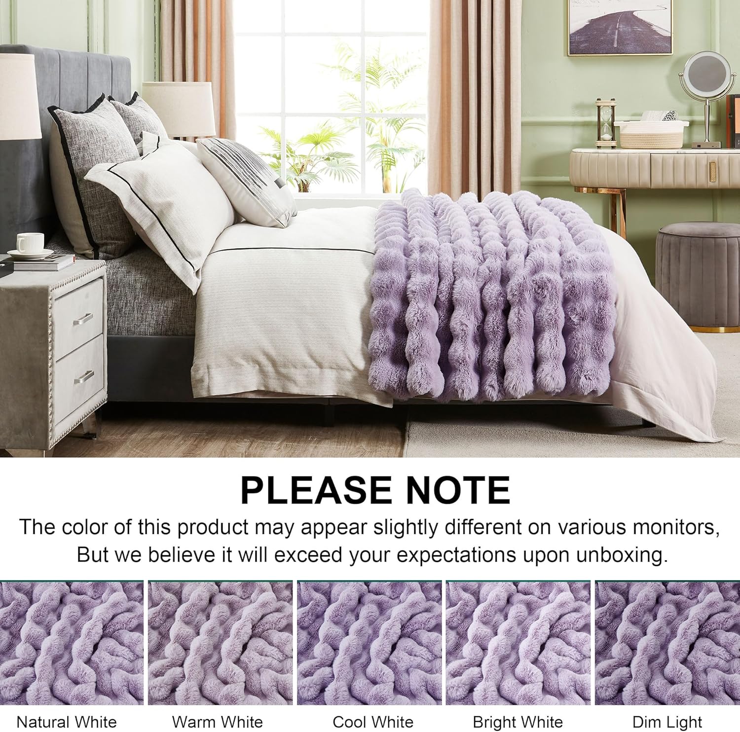 DREAMNINE Large Soft Thick Fuzzy Bubble Faux Rabbit Fur Blanket Full Size 70" x 80", Double Sided Comfy Plush Warm Shaggy Fluffy Blankets, Luxury Big Cozy Textured Furry Blanket for Bed, Lilac Purple