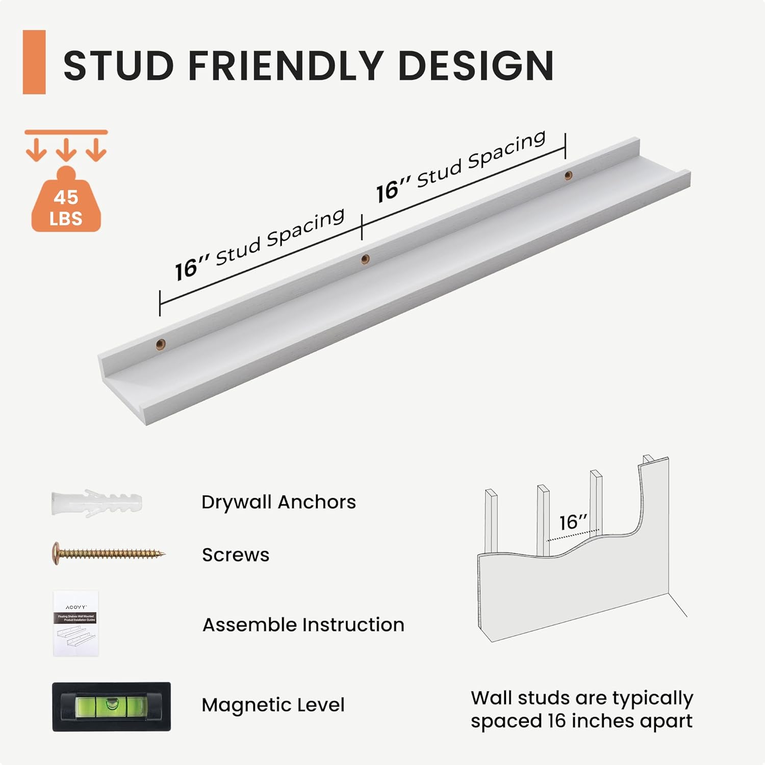 - Dual Picture Frame Shelves: Customize Your Space with Our Dual picture ledge shelf. This set includes two versatile picture ledge shelf, perfect for personalizing your home. Whether you're creating a family photo gallery in the hallway or showcasing your collectibles, these ledge shelves provide the ideal solution. Ensuring strength and reliability for all your display needs