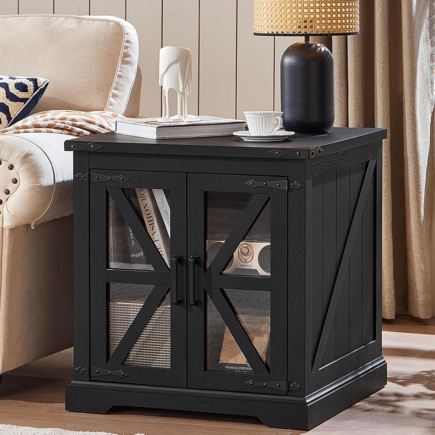 - 🏡[Functional Art Piece]The oversized end tables living room storage design provides convenient storage for your living space. The built-in shelves can be adjusted to 3 different heights as per your needs, accommodating an abundance of books, blankets, or coffee mugs. The glass barn-style doors blend traditional farmhouse aesthetics with a modern sensibility, transforming this piece into a more contemporary farmhouse night stand, coffee table, bedside table, or side-of-sofa art.