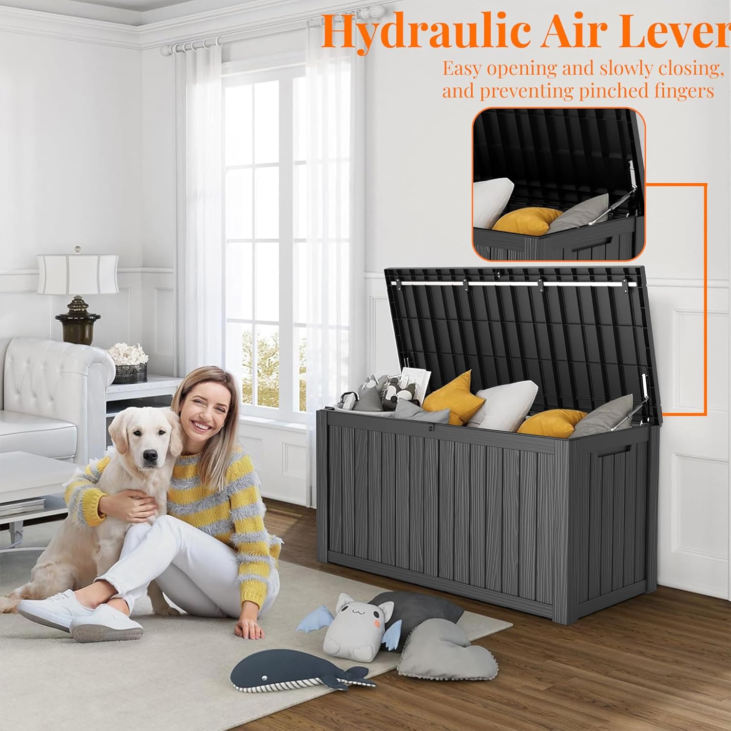 - Weatherproof material: This deck box is made of environmentally friendly polymer resin. It has better water and UV resistance than traditional wood. There is no need to worry about it fading and falling off in the coming years. Years of virtually no maintenance are required.