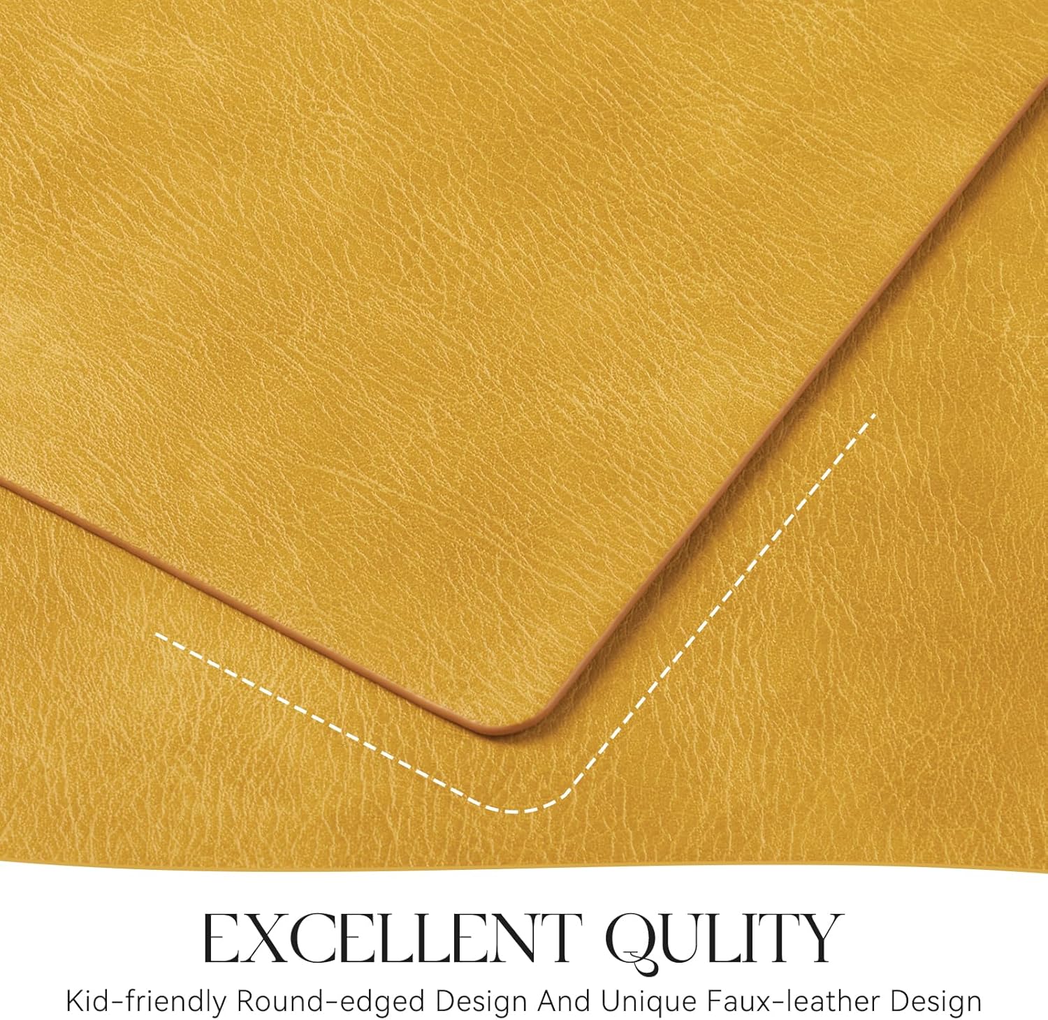 MOSAYT Vinyl Placemats Set of 6-12 X 17 Inch - Faux Leather 100% Waterproof Oil-Proof Wipeable PU Place Mats, Heat Resistant Reversible Table Mats for Kitchen, Dining, Outdoor (Yellow)