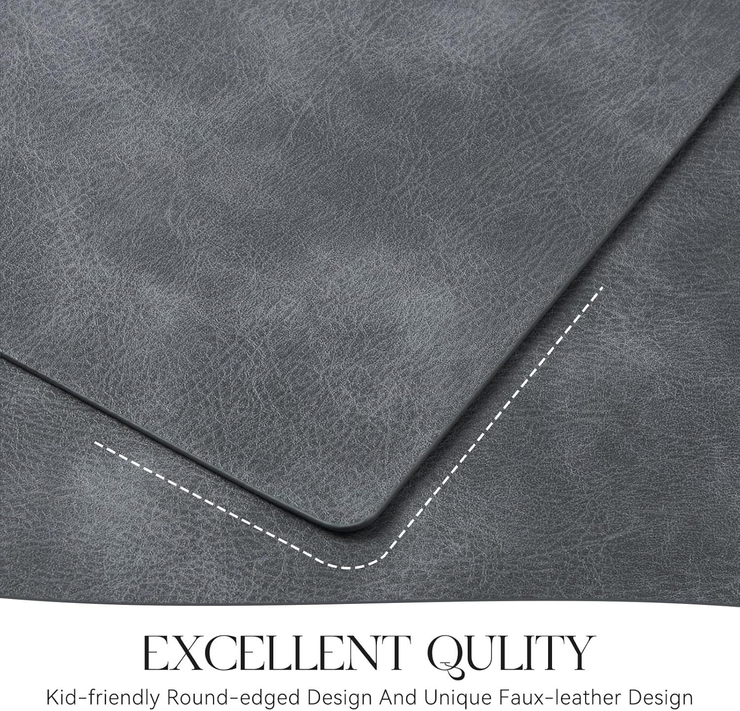 MOSAYT Vinyl Placemats Set of 8-12 X 17 Inch - Faux Leather 100% Waterproof Oil-Proof Wipeable PU Place Mats, Heat Resistant Reversible Table Mats for Kitchen, Dining, Outdoor (Grey)