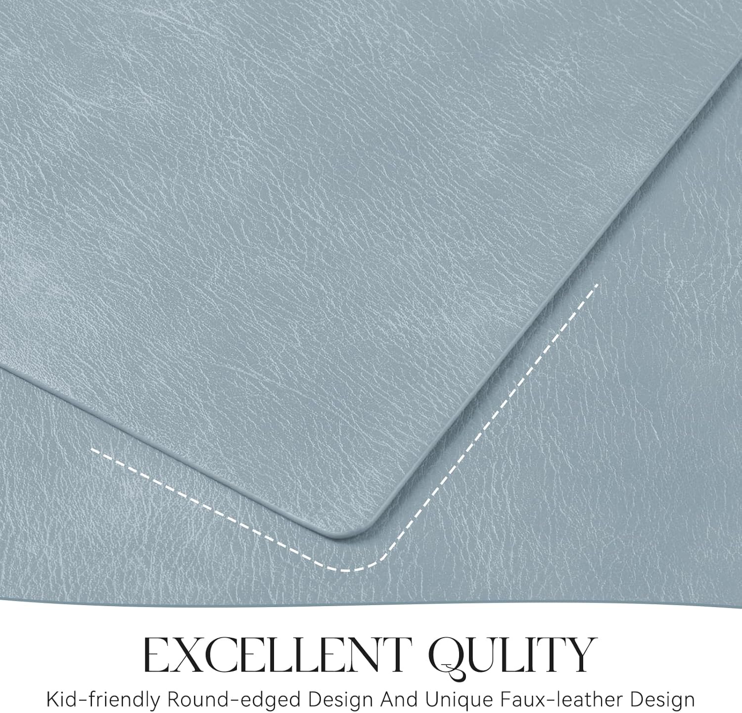 MOSAYT Vinyl Placemats Set of 8-12 X 17 Inch - Faux Leather 100% Waterproof Oil-Proof Wipeable PU Place Mats, Heat Resistant Reversible Table Mats for Kitchen, Dining, Outdoor (Light Grayish Blue)