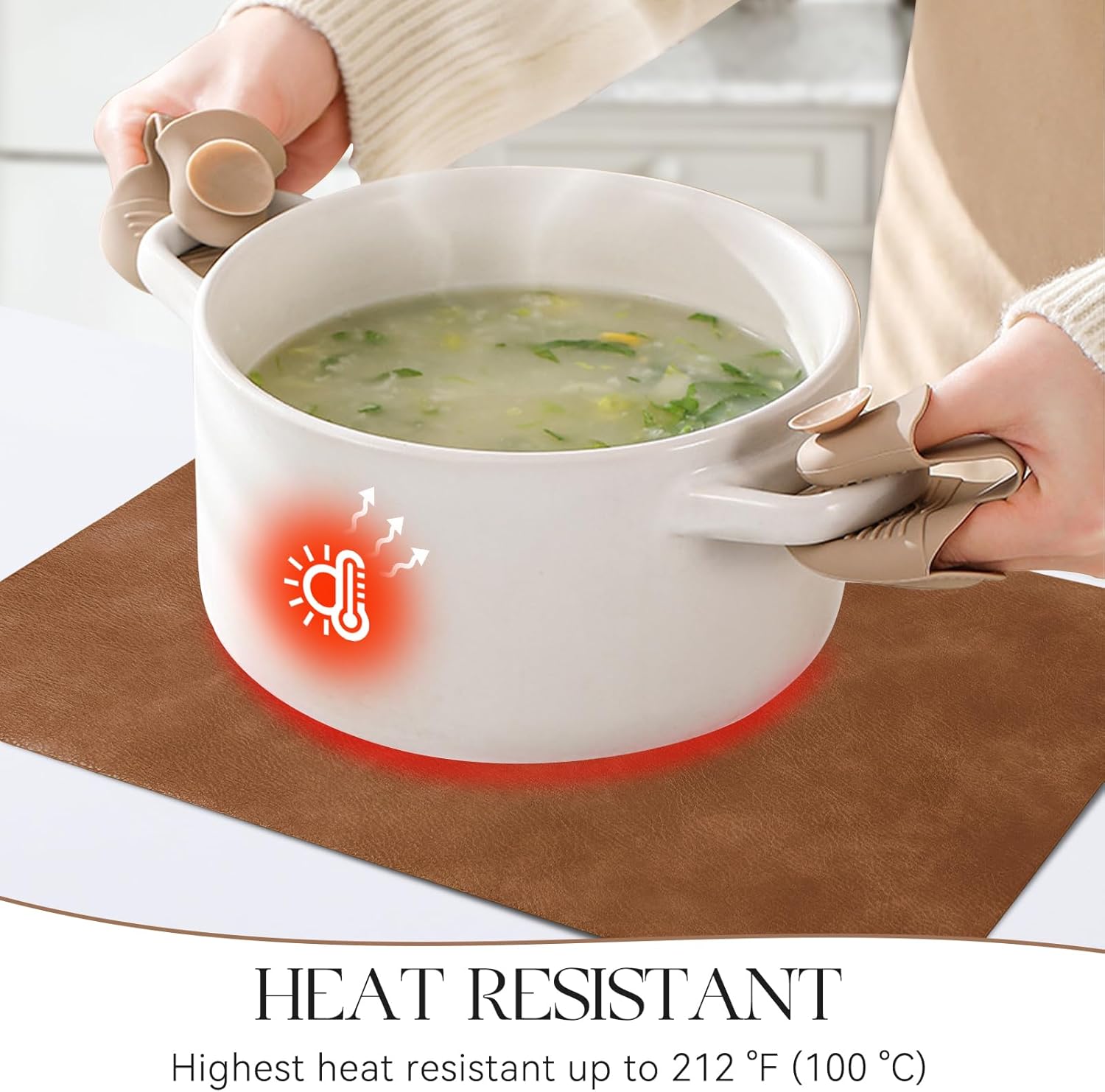 - PROTECT YOUR TABLE: Our placemats are 2mm thick and heat-resistant up to 212℉/100℃, which can protect your table from high temperatures and reduces noise from plates and flatware. It is an excellent choice to protect protect the surface of your dining table from hot dishes and liquid spills.