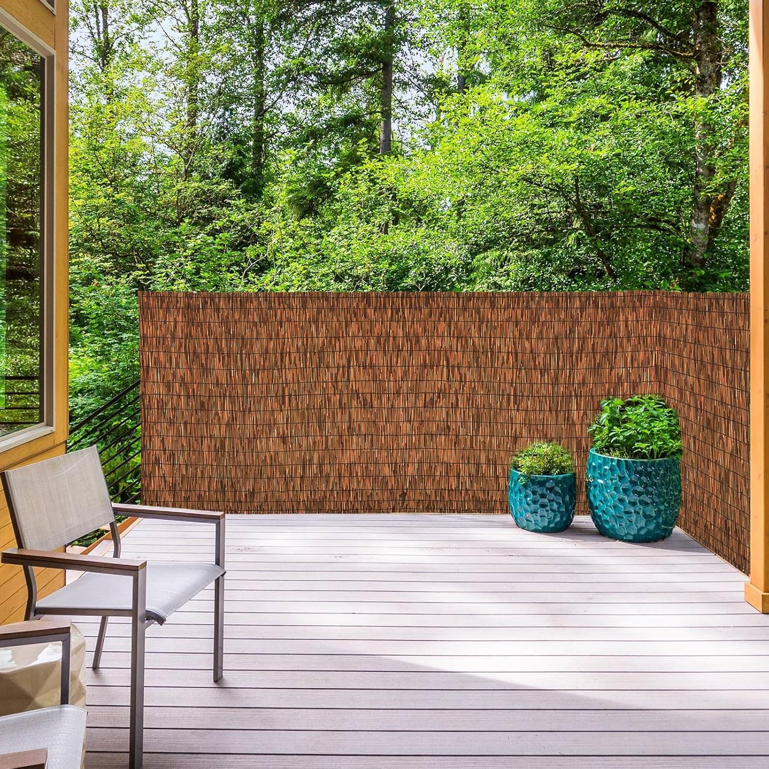Brown 2 Pack 4FT X 16.4FT Reed Fencing Roll, Balcony Privacy Shade Reed Bamboo Fencing Garden Fence Border, Wind Block Sunshade Fence Screen for Outdoor Yard Patio Flower Bed Edge