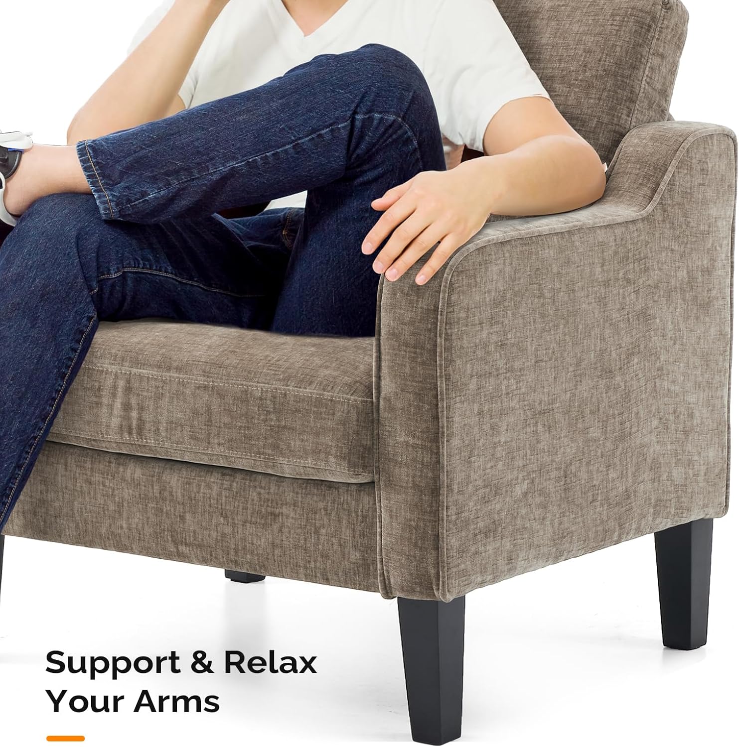 - Built for Stability and Durability--This living room chair features soft chenille material, resilient foam cushions with steel springs, a sturdy metal backrest, a wooden frame, and solid wood legs. It provides exceptional stability and seating support, boasting a weight limit of 380lbs ensuring a comfortable experience.